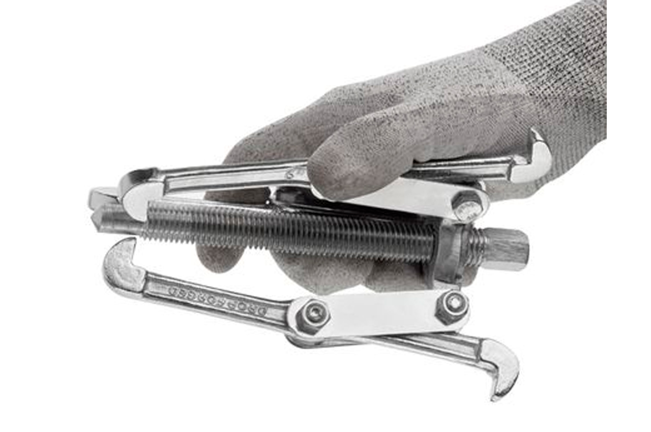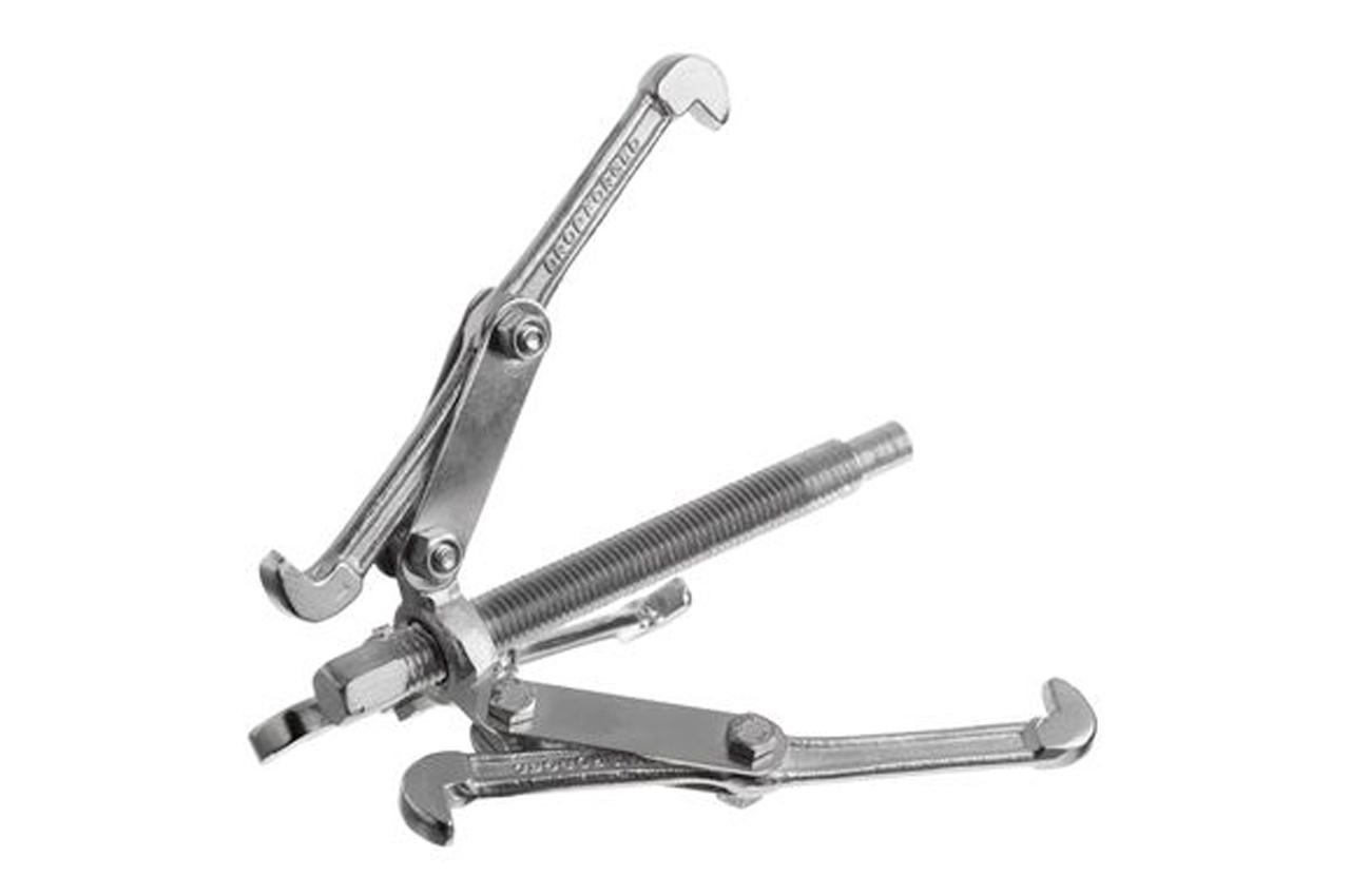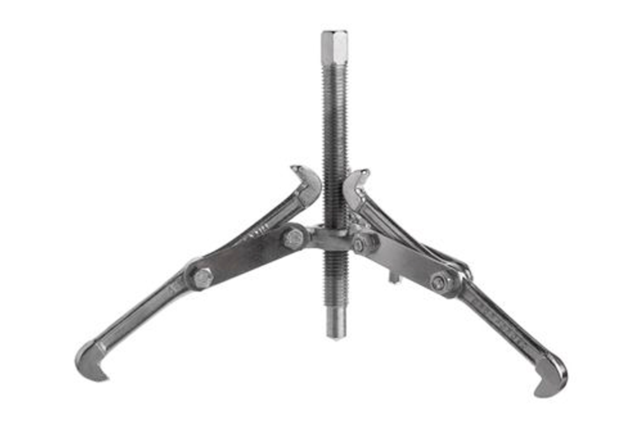 Съемник предназначен для демонтажа подшипников, шестерен, шкивов, втулок и маховиков, при этом не повреждая оборудования. Трехлапый съемник равномерно распределяет тяговое усилие и защищает от повреждения детали. Инструмент может переключаться с внутреннего захвата на внешний с коротким или длинным вылетом лап для максимальной универсальности. Узкие лапы съемника обеспечивают легкий захват и доступ к труднодоступным местам, а стальной центральный болт с резьбой обеспечивают плавную работу, позволяя регулировать глубину захвата. Винт с шестигранной головкой подходит для работы в паре с трещоткой, воротком с головкой или комбинированным ключом. Диаметр троса: 150 мм