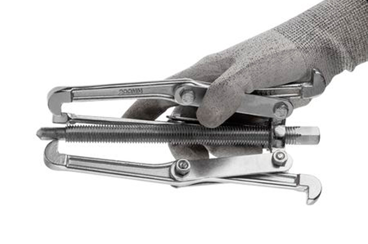 Съемник предназначен для демонтажа подшипников, шестерен, шкивов, втулок и маховиков, при этом не повреждая оборудования. Трехлапый съемник равномерно распределяет тяговое усилие и защищает от повреждения детали. Инструмент может переключаться с внутреннего захвата на внешний с коротким или длинным вылетом лап для максимальной универсальности. Узкие лапы съемника обеспечивают легкий захват и доступ к труднодоступным местам, а стальной центральный болт с резьбой обеспечивает плавную работу, позволяя регулировать глубину захвата. Винт с шестигранной головкой подходит для работы в паре с трещоткой, воротом с головкой или комбинированным ключом.