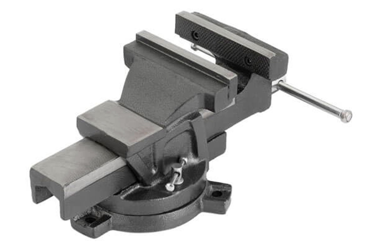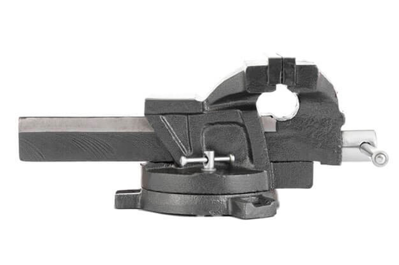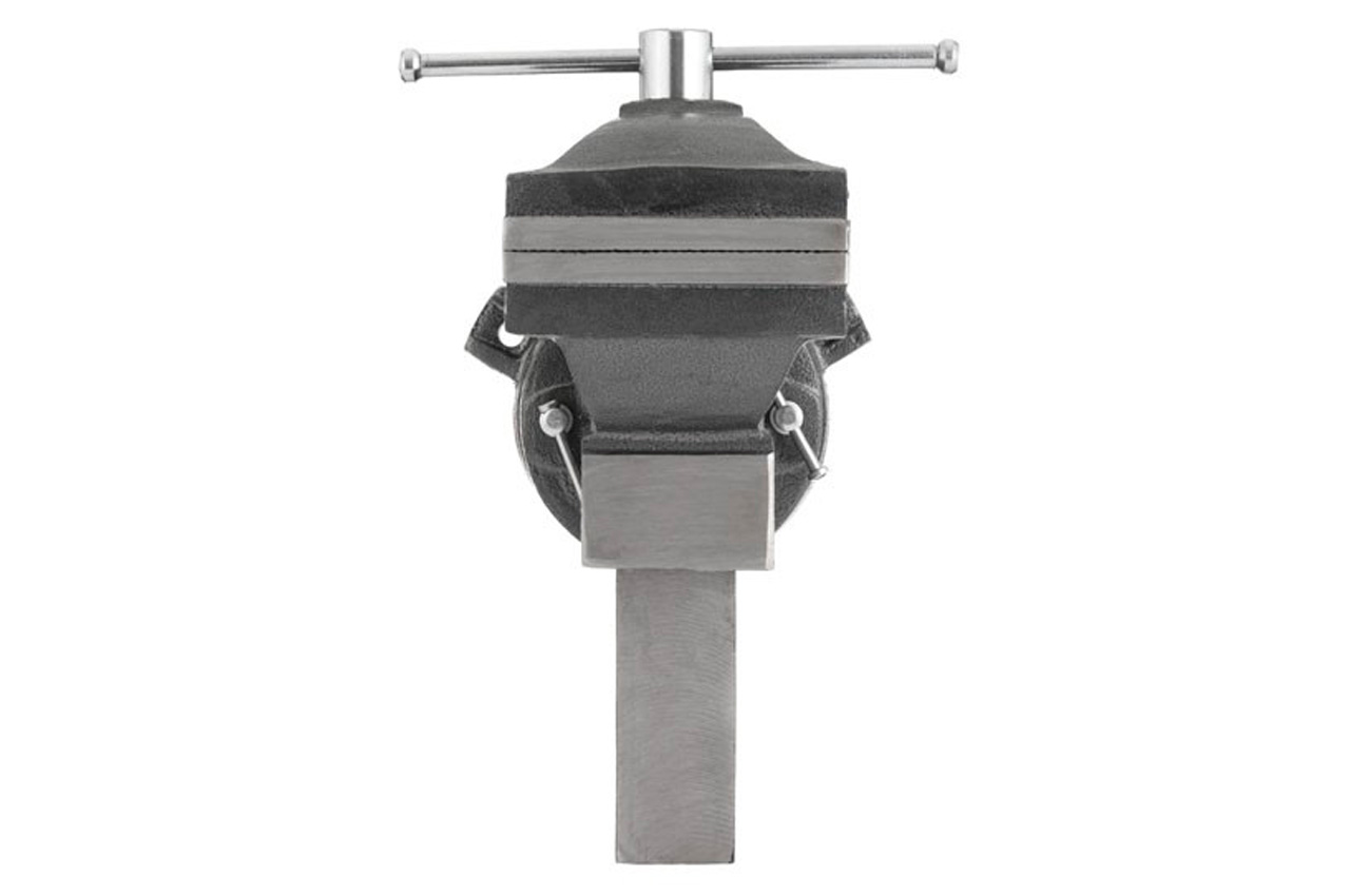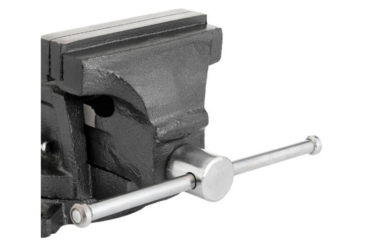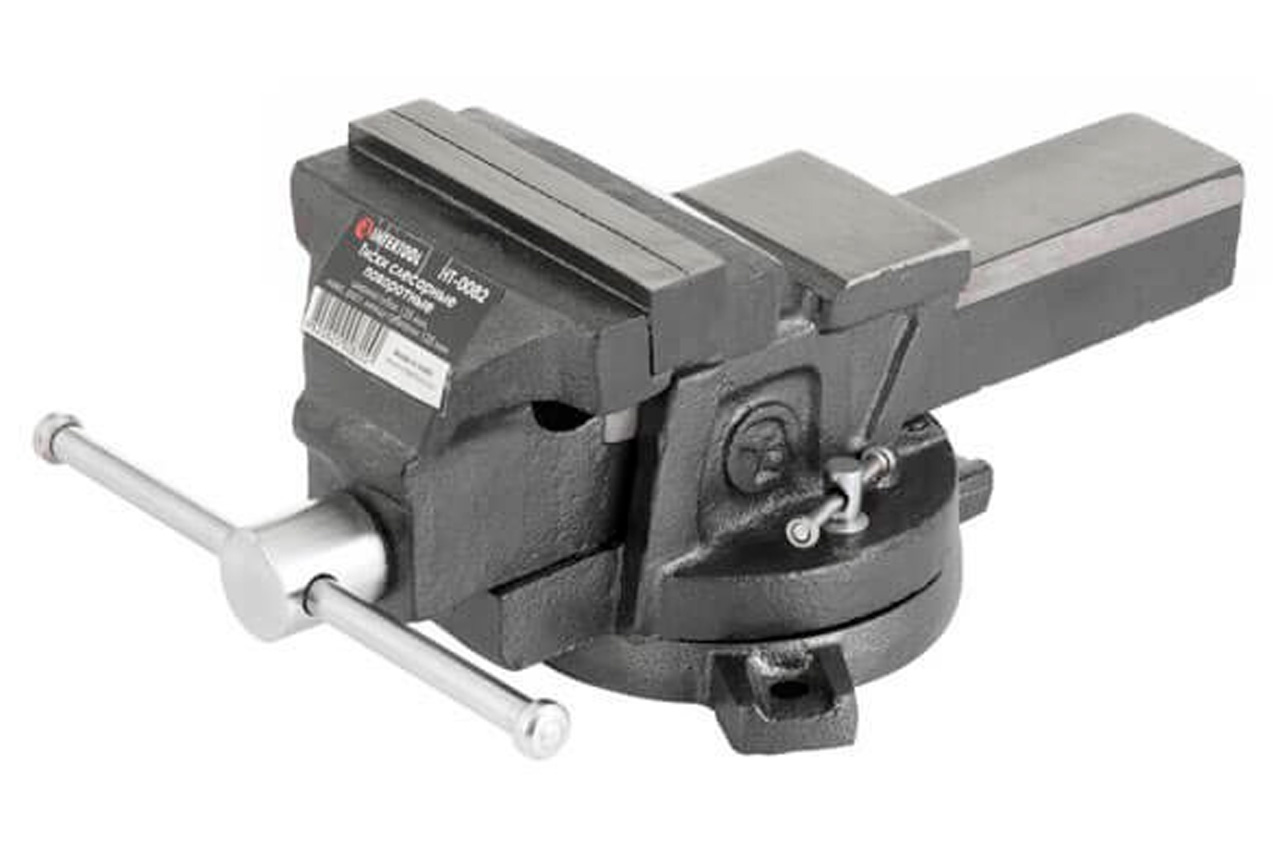 Тиски слесарные HT-0082 предназначены для закрепления заготовок, предметов и деталей для дальнейшей их обработки. Конструкция с металлической наковальней расширяет функционал тисков и позволяет выполнять небольшие ударные работы над изделием. Поворотная база дает возможность разворачивать и неподвижно фиксировать заготовку в диапазоне 360 градусов вокруг своей оси для удобства выполнения работ. Закаленные губки с зубчатой поверхностью обеспечивают надежный захват и износостойкость рабочей поверхности. Тиски можно установить стационарно с помощью отверстий в базе. Долговечные и прочные Тиски изготовлены из чугуна, отличаются своей прочностью и жесткостью конструкции. Покрыты стойкой к деформации порошковой краской против химических, механических и атмосферных воздействий. Удобная работа Большая наковальня (в соотношении с общими габаритами тисков) позволяет комфортно проводить небольшие слесарные работы с применением ударов. Зубчатые губки закаленные надежно фиксируют изделие и предупреждают проскальзывание. Отличаются повышенной износостойкостью, что дает возможность выполнять более тяжелые работы. Поворотная база расширяет возможности фиксации деталей в горизонтальной плоскости на 360 градусов вокруг своей оси - вы можете зафиксировать заготовку в любом удобном для работы положении. Особенности: Материал корпуса: чугун; Покрытие: стойкая к деформации порошковая краска; Большая наковальня; Зубчатые губки из закаленной стали; Поворотная база, 360 градусов; Полированные рукоятки. Размер наковальни: 70/45 мм; Тип губок: съемные; Основа: поворотная; Высота губок: 24 мм; Ширина губок: 125 мм; Ширина захвата: 130 мм