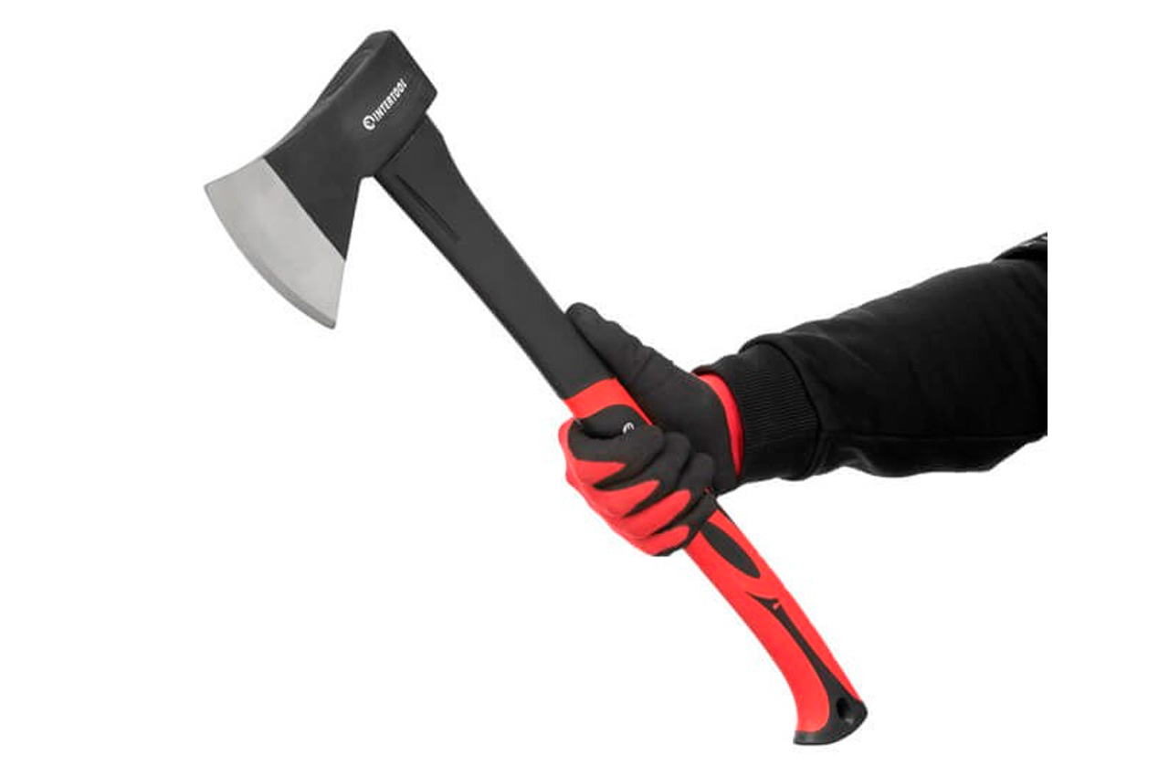 Топор незаменимый инструмент в хозяйстве, хороший помощник дома и на природе. Его часто применяют как инструмент для грубой обработки древесины. Износоустойчивый обух топора, весом 1000 г, изготовлен из высококачественной инструментальной стали. Лезвие переносит ударные нагрузки без повреждений, легко точится и долго остаётся острым. Двухкомпонентная рукоять из фиберглаcса с прорезиненными вставками – прочная, легкая и долговечная. Топор не выскальзывает из рук даже в дождливую погоду благодаря резиновым вставкам и небольшому изгибу рукоятки. Удобный хват распределяет нагрузку и помогает выполнять гораздо больший объем работ. Оптимальная длина рукоятки в 530 мм позволяет наносить точные и мощные удары инструментом. Топор идеально сбалансирован. Топорище и обух надежно закреплены, нет никакого люфта, даже при большой ударной нагрузке. Топор компактного размера, поэтому легко помещается в багажник машины. Силиконовая накладка на лезвие защищает от случайных порезов и повреждений. Красно-черный окрас топора помогает быстро его находить глазами, даже в густом лесу или в траве. На конце рукоятки располагается отверстие, за которое топор можно подвесить на стену для хранения. Сделайте свою работу или отдых на природе комфортней, с топором HT-0263. Особенности Рубит без особого труда и долго остаётся острым т.к. ударная часть топора изготовлена из высококачественной инструментальной стали. Прочная и лёгкая рукоять из фибергласа позволяет работать дольше обычного. Наносит максимально мощные удары благодаря оптимальной длине рукоятки. Небольшой размер и защитная накладка на лезвие позволяет положить его в багажник машины или взять в поход. Его не потерять, благодаря яркому цвету, он всегда выделяется на фоне листьев и травы. Общий вес топора - 1567г, вес обуха - 1000г. Общая длина: 610 мм; Материал рукоятки: фибергласс