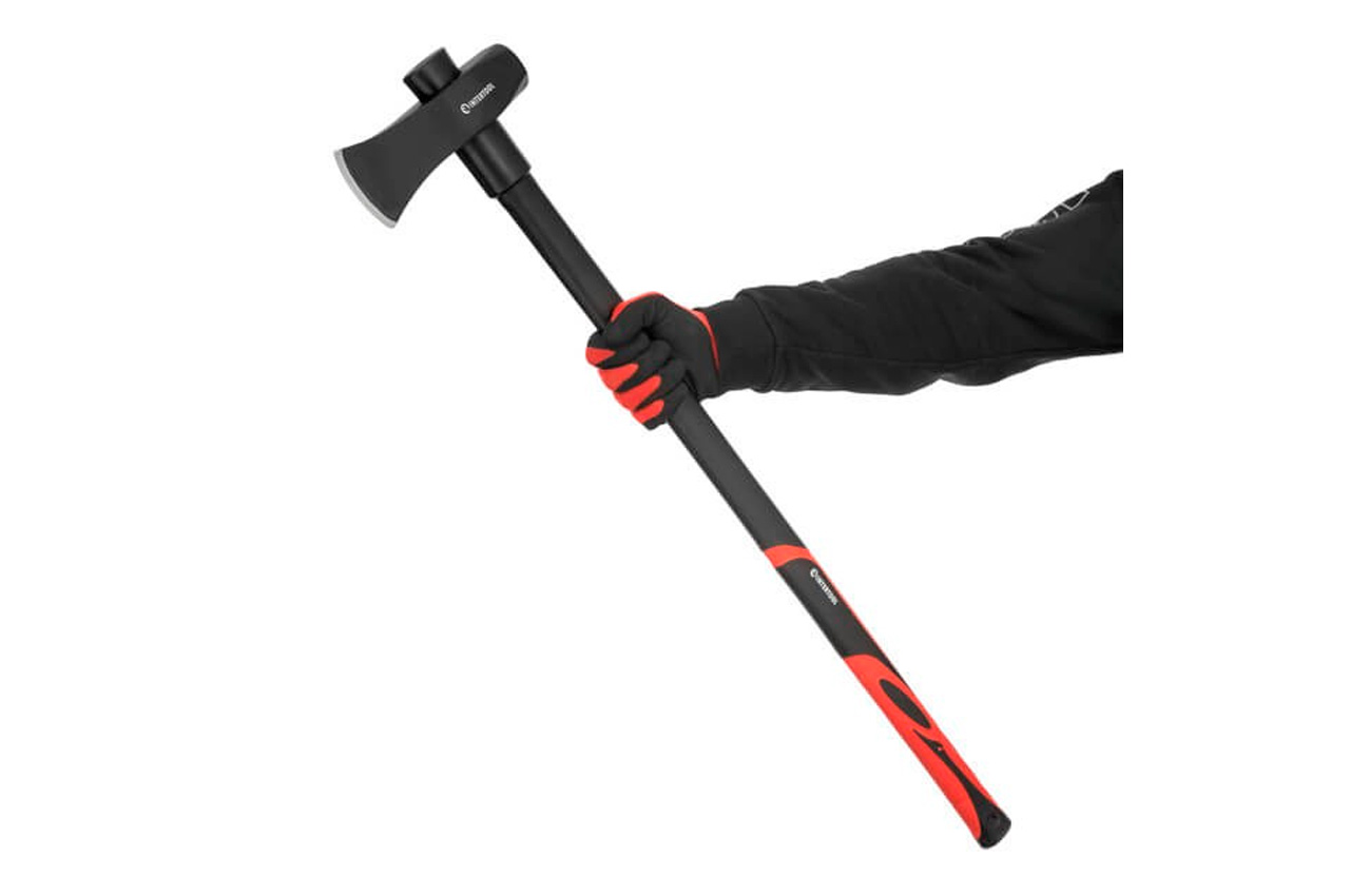 Колун с ручкой из фибергласса HT-0273 применяется для грубой обработки древесины, колки и рубки дров. Лезвие колуна изготовлено из высококачественной инструментальной стали. При замахе колун набирает много кинетической энергии, благодаря чему он позволяет раскалывать большие и толстые поленья, с которыми не справится обычный топор. При ударе колун не должен застревать в древесине, он должен отскакивать, оставляя след от своего лезвия. Поэтому, колун имеет более тупое лезвие, в сравнении с топором. Удобная для охвата рукоятка выполнена из фибергласса. Общая длина: 930 мм; Материал рукоятки: фибергласс