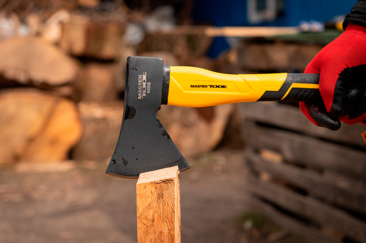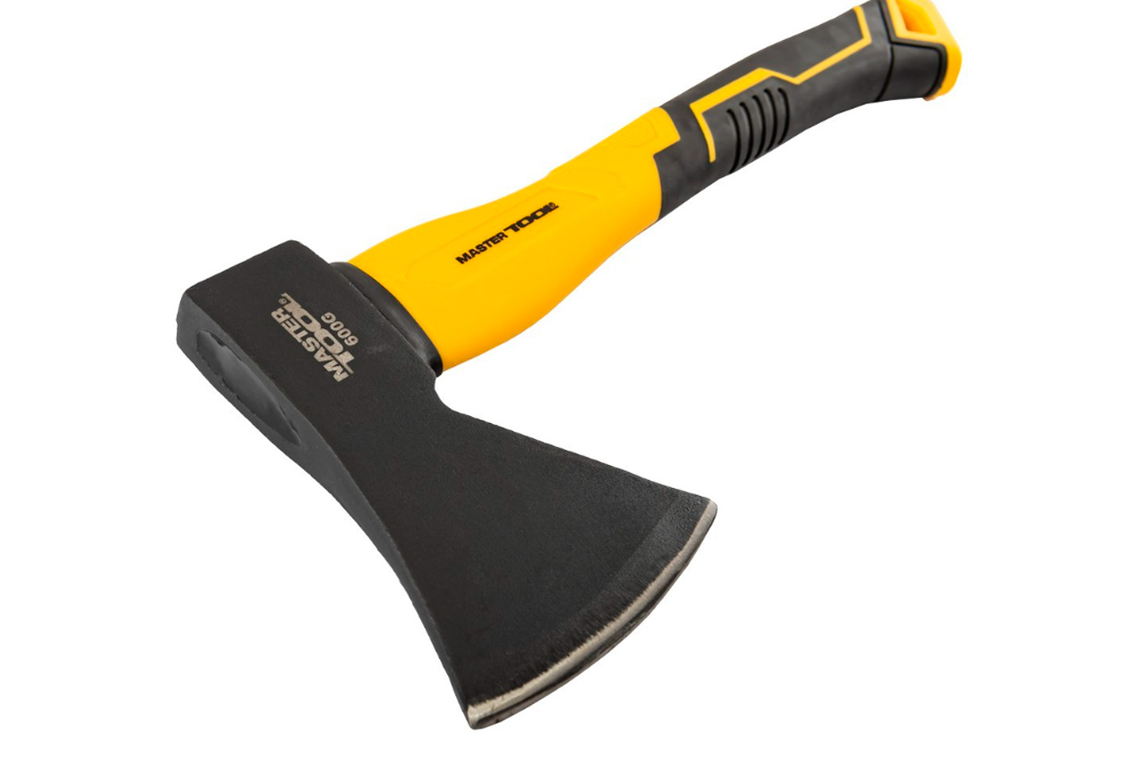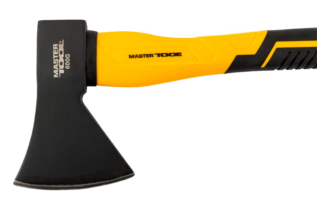 Топор Mastertool – 600г x 370мм фиберглас. Применяется для рубки, колени и теснения древесины. • сталь C45 • фибергласовая ручка с TPR покрытием