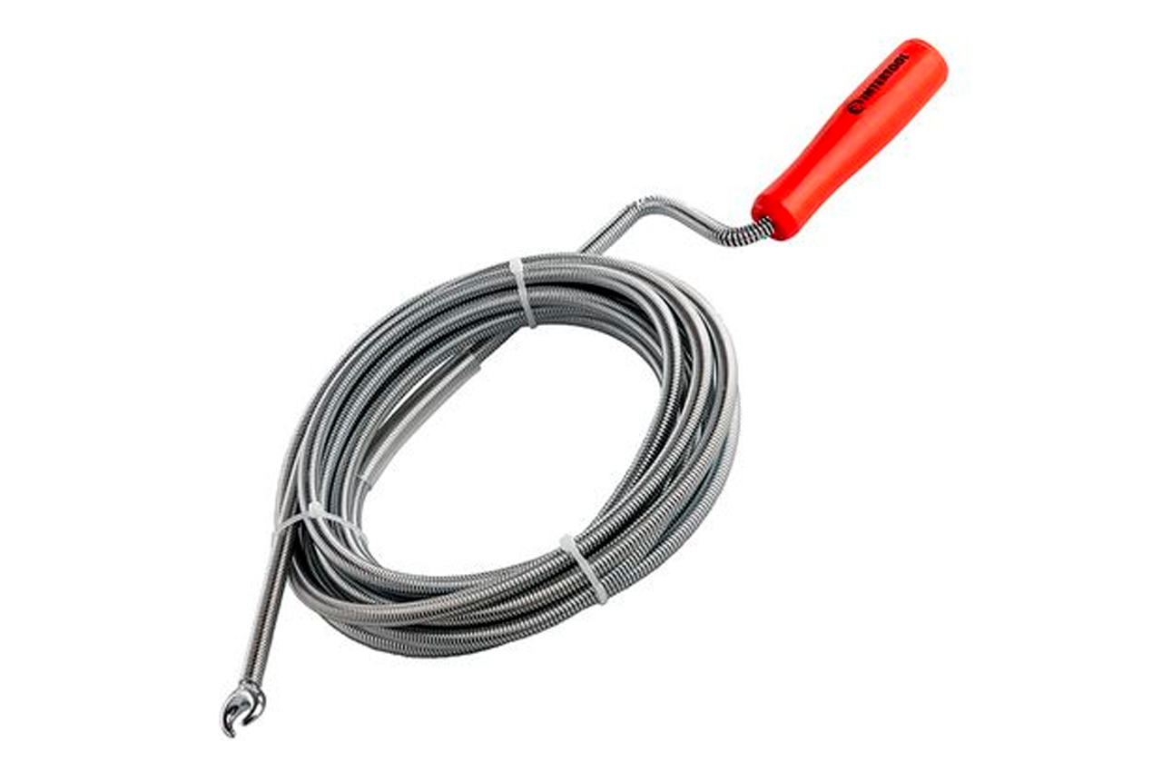 Сантехнический трос для чистки труб применяется в том случае, когда два более бережных способа уже бездействуют: не помог ни вантуз, ни специальные химические средства. Этот инструмент позволяет эффективно избавиться от образовавшейся пробки внутри трубы. Предназначен для прочистки канализации в квартирах и частных домах. Трос в виде полой спирали, изготовлен из оцинкованной стали, диаметром 9 мм, длиной 5 метров. Трос очень гибок, но при этом прочен. Наконечник изготовлен в виде пробойника-рожка для лучшей проходимости. Ручка Г-образной формы позволяет удобно вращать трос для разрушения пробок.