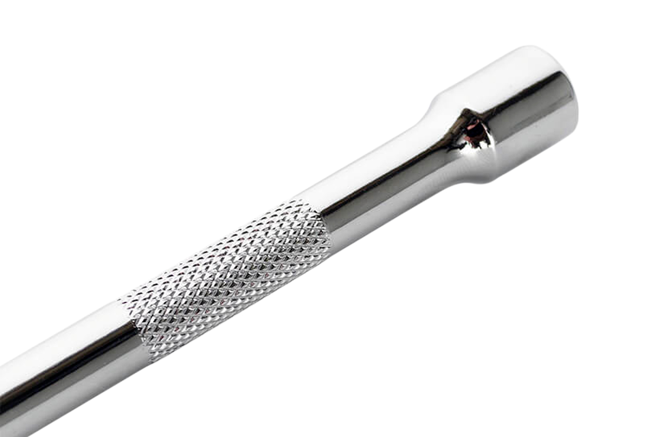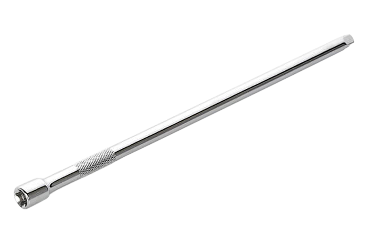 Удлинитель позволяет работать с креплениями, находящимися в труднодоступных местах или в углублениях, куда обычная головка с трещоткой не может добраться. Длина удлинителя составляет 100 мм. Удлинитель используется с трещотками и воротниками с посадочным квадратом 1/4".