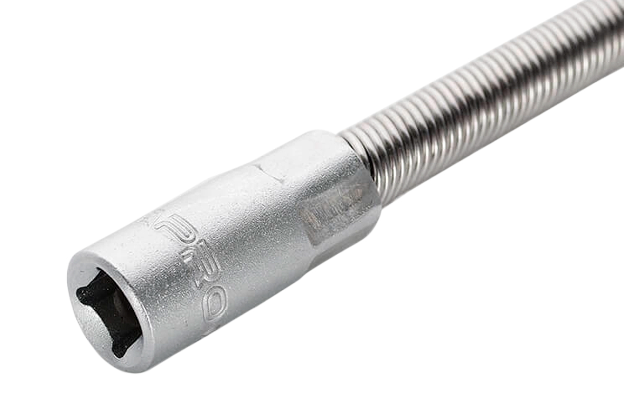 Удлинитель Apro - 1/4" x 150 мм гибкий - полезные принадлежности для работы с болтами, гайками и другими элементами (например, автомобильными свечами), которые расположены в труднодоступных местах. Модель изготовлена из практической и надежной хромованадиевой стали (CrV). механизм гарантирует, что насадка не представится в процессе работы.