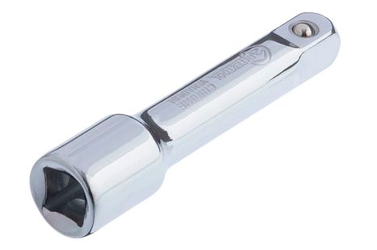 Удлинитель позволяет работать с крепежами, находящимися в труднодоступных местах или в углублениях, куда обычная головка c трещоткой не могут добраться. Длина удлинителя составляет 50 мм. Инструмент изготовлен из Cr-V стали, что гарантирует исключительную износостойкость и долговечность. Удлинитель используется с трещотками и воротками с посадочным квадратом 1/4".