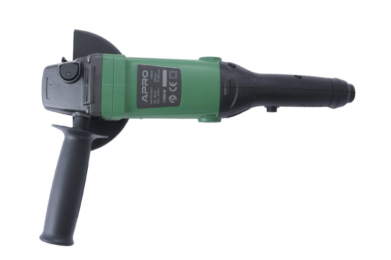 Электрическая угловая шлифмашина (болгарка) Apro - КШМ 125 1250 Р предназначена для сухой чистки и резки металлических, цементных, гранитных или мраморных поверхностей, очистки металлоконструкций от коррозии и зачистки сварных швов с помощью зачистных или отрезных кругов. до 6 мм. При использовании специальных насадок возможно применение болгарки для очистки изделий от краски. Также болгарку можно использовать с установкой в специальную стойку.