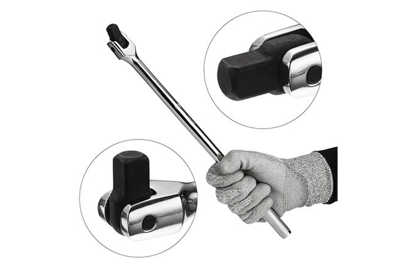 Вороток L-образный ET-1033 предназначен для работы с торцевыми головками , имеющими присоединительный квадрат на 1/2". Длина воротка – 375 мм, это длина выше средней для работы с торцевыми головками. Таким воротком можно пользоваться в работе с легковыми и грузовыми авто. Материал изготовления – хром-ванадиевая сталь. Эта сталь характеризует инструмент высокой прочностью и износоустойчивостью. Удобство воротка заключается в рукоятке, которая имеет насечки – они препятствуют скольжению рук во время работы. Главное удобство воротка заключается в том, что квадрат находится на подвижном шарнире. Это позволяет, например, работать с гайками и болтами под определенным углом к ним, если нет возможности установить рукоятку воротка строго перпендикулярно болту или гайке. Тип воротка: вороток с шарниром; Квадрат: 1/2"