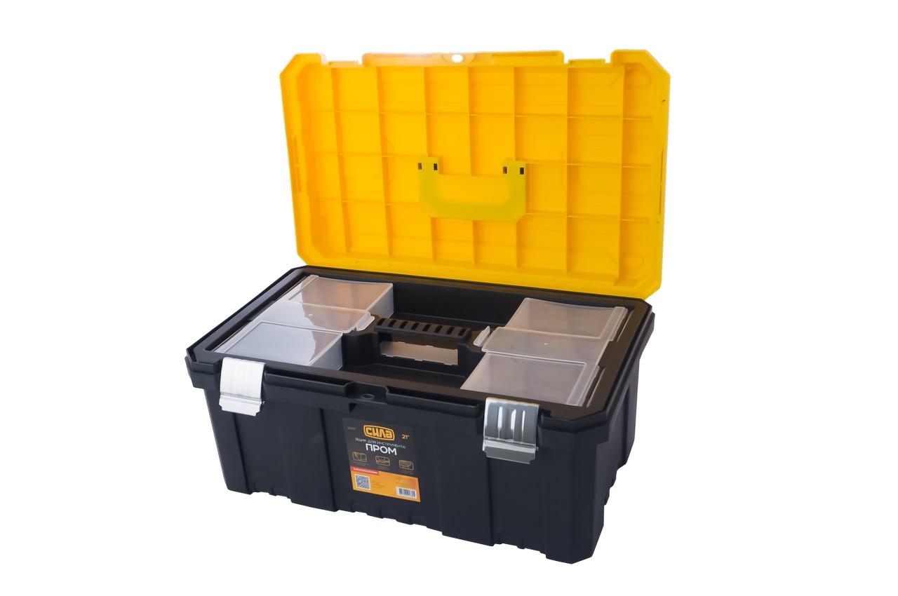 Ящик для инструмента Сила - практичная и удобная в использовании. Вместительный ящик закроет ваши потребности в организации и хранении инструмента, деталей и другого оборудования для рыбалки, дома, автомобиля. Продуманный дизайн, прочные материалы изготовления облегчают хранение и транспортировку инструментов, необходимых для работы. Габаритные размеры: 540 x 330 x 250 мм