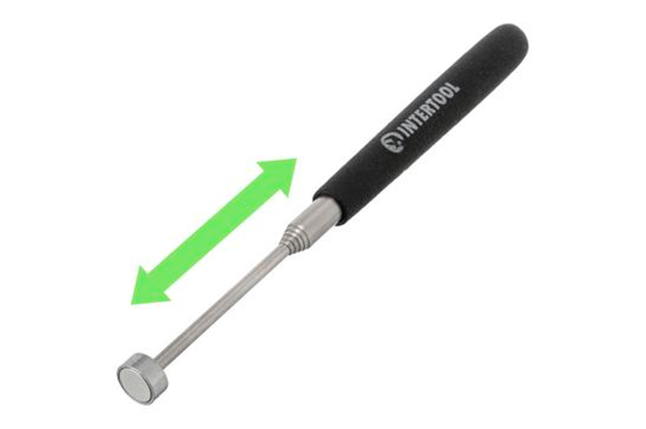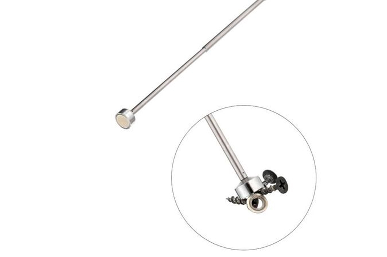 Магнит на телескопическом удлинителе или как его еще называют захват магнитный телескопический - полезная вещь в автомастерской и в гараже у любого хозяина. С его помощью Вы легко найдете и достанете потерявшиеся гайки, болты и прочие металлические детали, которые попали внутрь кузова и в места, где их казалось бы невозможно достать! Портативный магнит легко раскладывается с 130 мм в телескопический длинный магнитный держатель длиной 640 мм, и позволяет достать упавшие в труднодоступные места металлические предметы с силой 2,25 кг. Длина в сложенном виде: 130 мм; Максимальное усилие: 2,25 кг