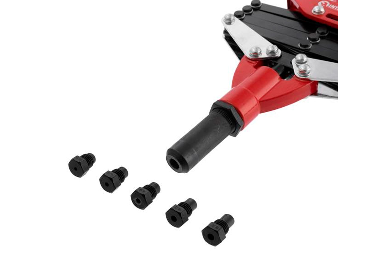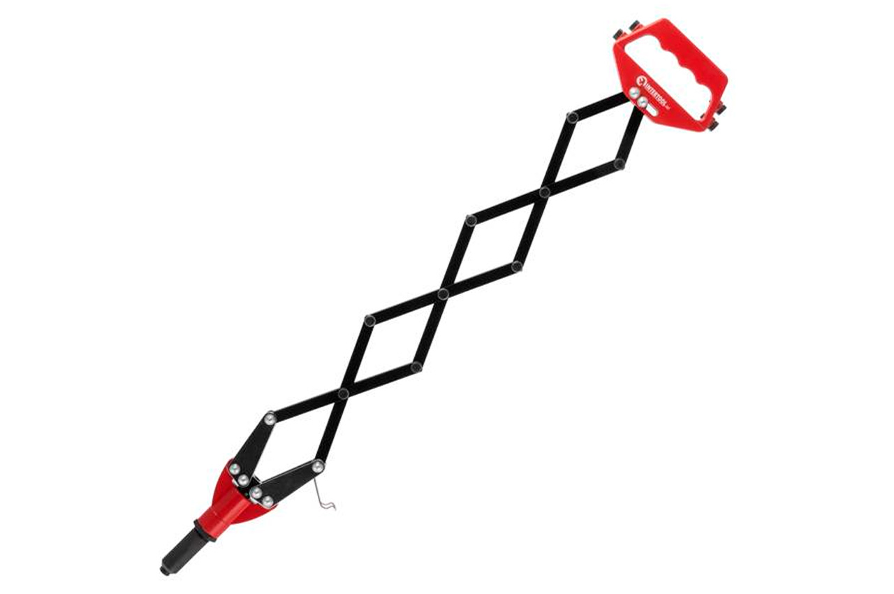Заклепочник с рычажно-складным механизмом используется для скрепления различных поверхностей между собой с помощью стальных или алюминиевых заклепок диаметром 2.8, 3.2, 4 и 4.8 мм. Оснащен выдвижным механизмом, позволяющим работать в труднодоступных местах и удобной эргономичной ручкой.