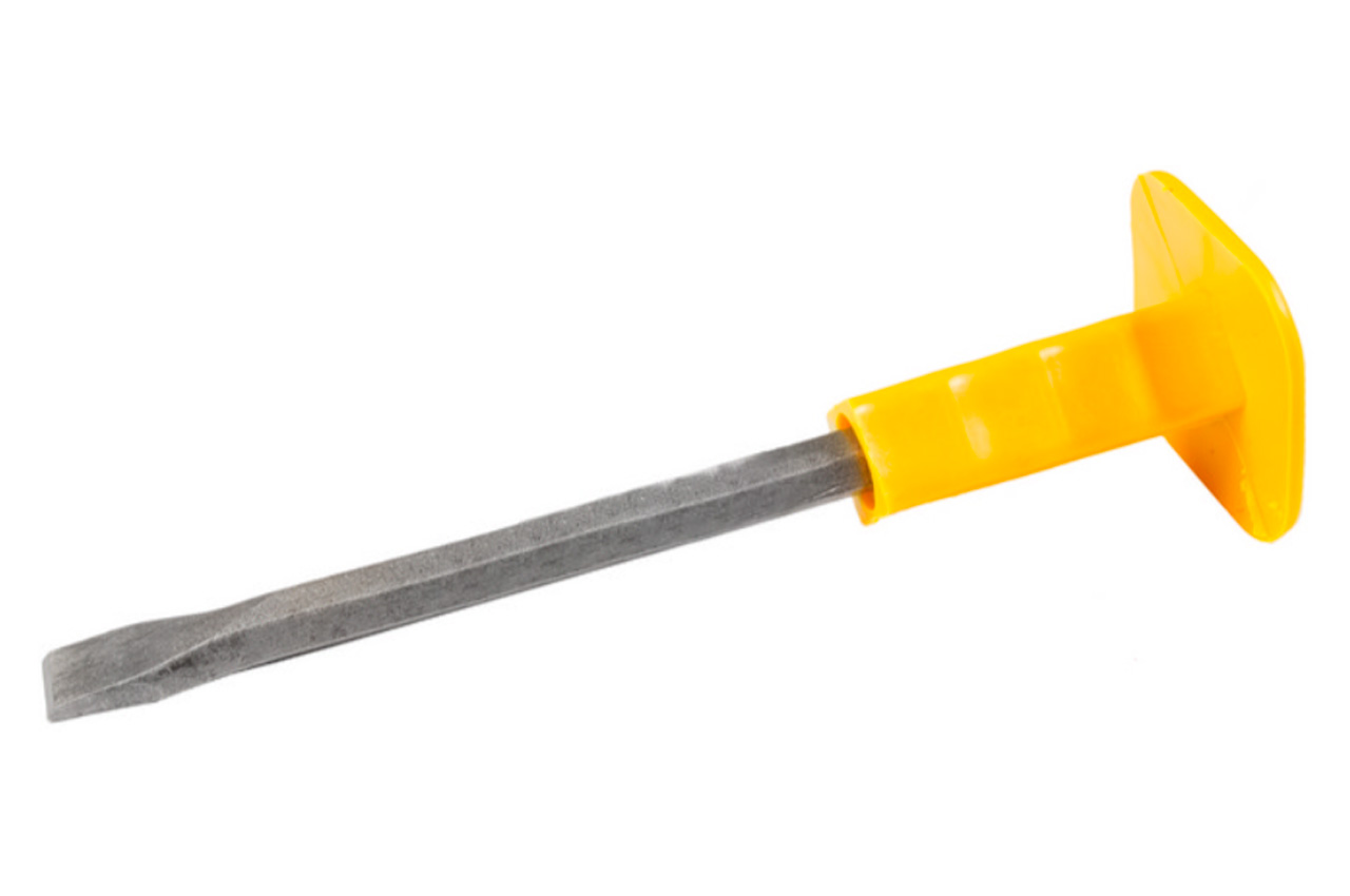 Предназначен для рубки металла и обработки камня. Оснащен эргономичной рукояткой с пластмассовым фартуком для защиты рук от удара. Имеет углубления для пальцев, обеспечивающие более комфортную и удобную работу.