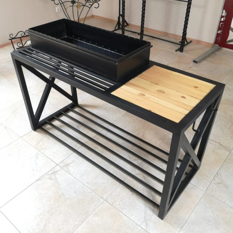 У домашніх умовах такий мангал можна зробити приблизно за 40 хвилин. Важливо знайти баланс між товщиною металу та вагою конструкції: тонкі листи швидко прогорають, а занадто товсті роблять установку важкою для транспортування.