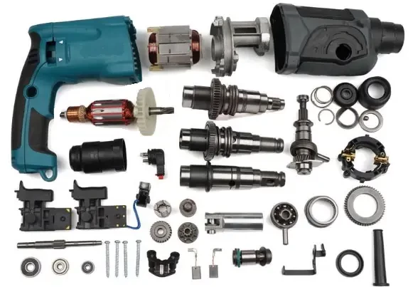 Для ремонту знадобляться: кнопки, щітки, патрони, підшипники, шестерні, ротор або статор.