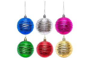 Набір іграшок ялинкових різноколорових куль "Хвиля" 6см (3+3шт)