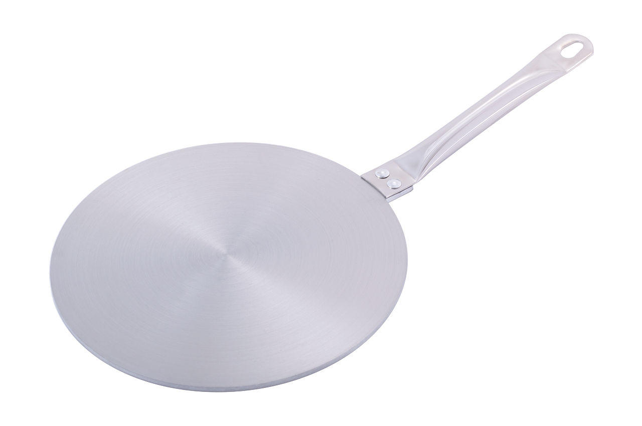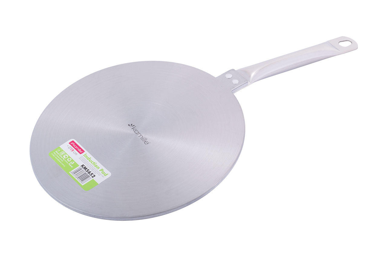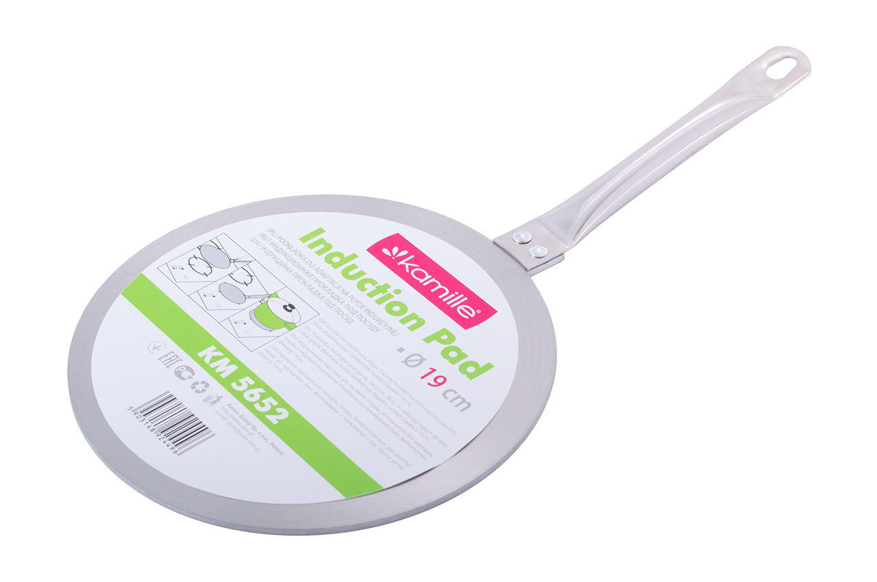 Адаптер для індукційних плит Kamille KM-5652 являє собою додатковий кухонний аксесуар, який дозволяє ставити абсолютно будь-які типи посуду на індукційну варильну поверхню. Предмет володіє компактними формами, і відрізняється продуманістю дизайну. Матеріал: нержавіюча сталь. Діаметр: 19,5 див. Довжина ручки: 16см. Використовується для адаптації посуду до індукційним плит.