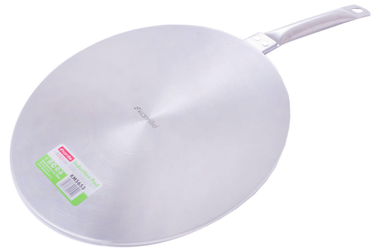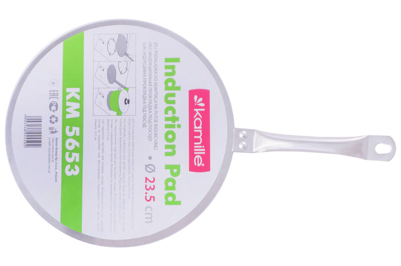 Адаптер для індукційних плит Kamille KM-5653 являє собою додатковий кухонний аксесуар, який дозволяє ставити абсолютно будь-які типи посуду на індукційну варильну поверхню. Предмет володіє компактними формами, і відрізняється продуманістю дизайну. Матеріал: нержавіюча сталь. Діаметр: 23,5 див. Довжина ручки: 16см. Використовується для адаптації посуду до індукційним плит.