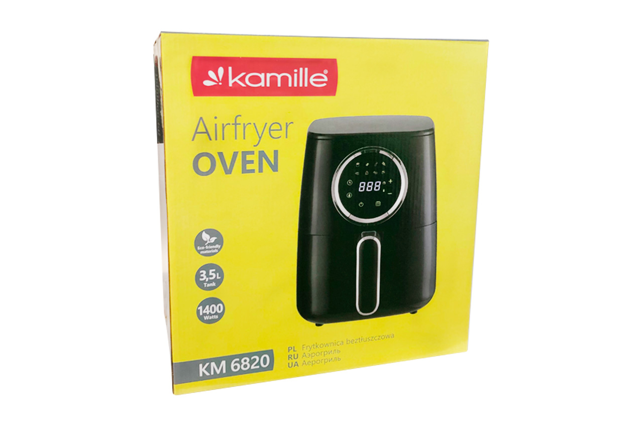 Аерофрітюрніца від Kamille надасть вам можливість насолоджуватися запеченим м'ясом та овочами, займатися випічкою, готувати у фритюрі та навіть на грилі. Головною відмінністю пристрою є його інтуїтивно зрозуміле управління механічного типу. А з визначенням обраного режиму роботи допоможе спеціальна світлодіодна індикація. Тепер приготувати картопля фрі без вмістом олії, а також інші страви не складе жодних труднощів навіть для недосвідченого користувача. При всій своїй функціональності аерофрітюрниця досить компактна і не створюватиме ніяких незручностей при зберіганні навіть в умовах обмеженого простору.