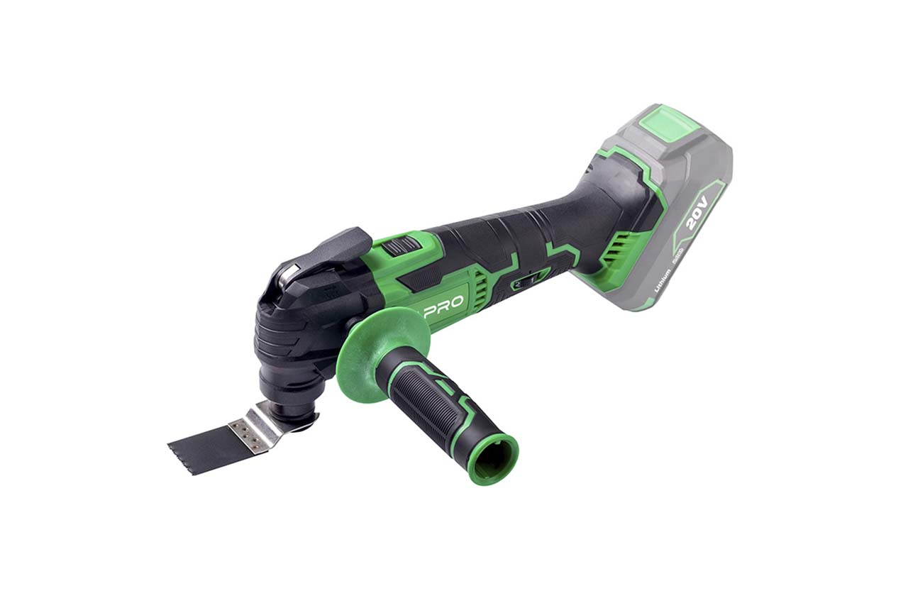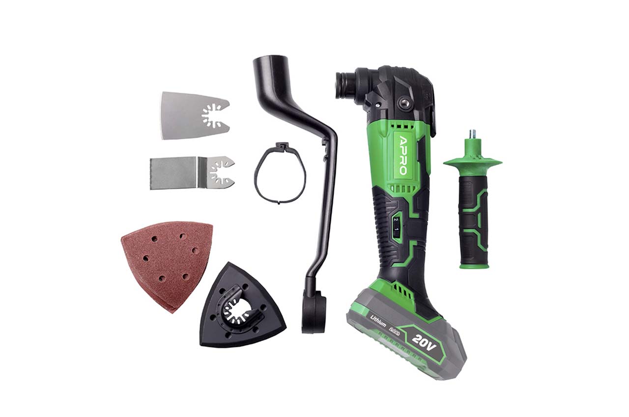 Акумуляторний реноватор Apro - MT-20 (без АКБ) Інструмент широко використовується для виконання надточних, різноманітних робіт, а саме: шліфує невеликі поверхні, робить заглибний пропил у фанері, дереві, ламінаті, гіпсокартоні тощо. Апарат оснащений потужним електродвигуном, що гарантує стабільну роботу при інтенсивних навантаженнях. Великий діапазон регульованої швидкості ходу від 5500 до 21000 об/хв, а кут коливань 3 градуси дозволяє виконувати різноманітну роботу, не використовуючи інших інструментів.