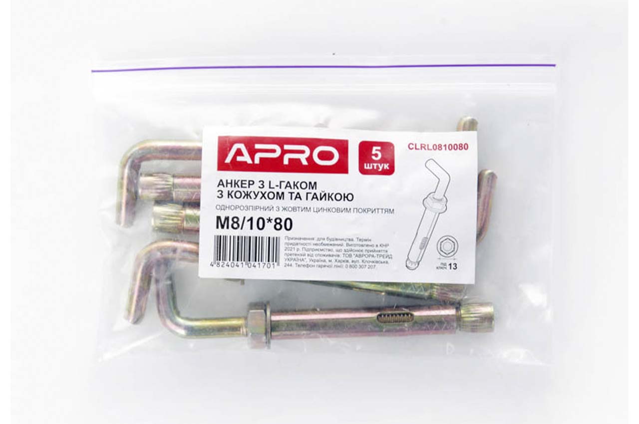 Анкер однорозпірний з гайкою L-гак Apro - 10 х 80мм x М8 (5шт)