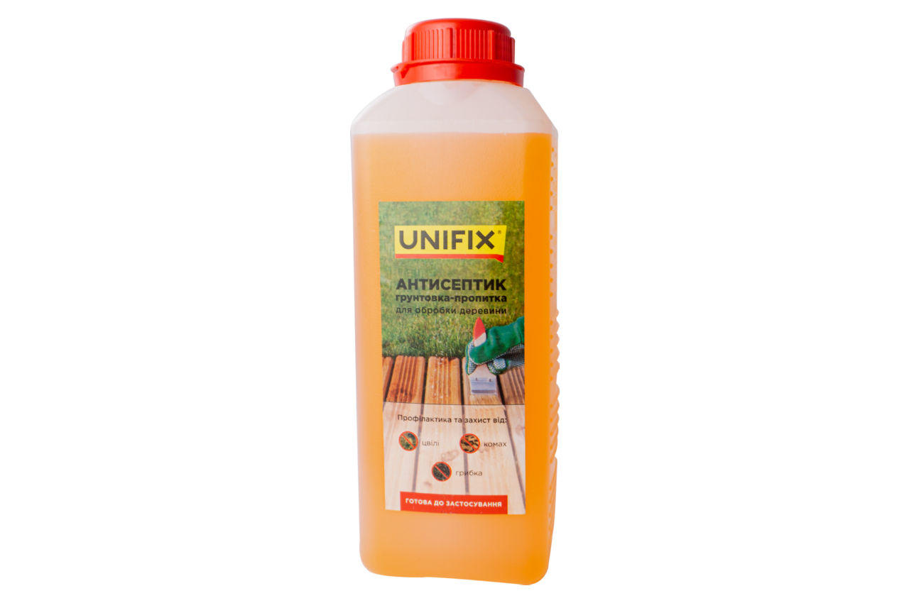 Антисептик грунтовка-просочення для обробки деревини Unifix - 1 кг призначений для профілактики та знищення цвілі, грибка, комах на дерев'яних поверхнях. Може застосовуватися як перед фарбуванням, так і без неї.