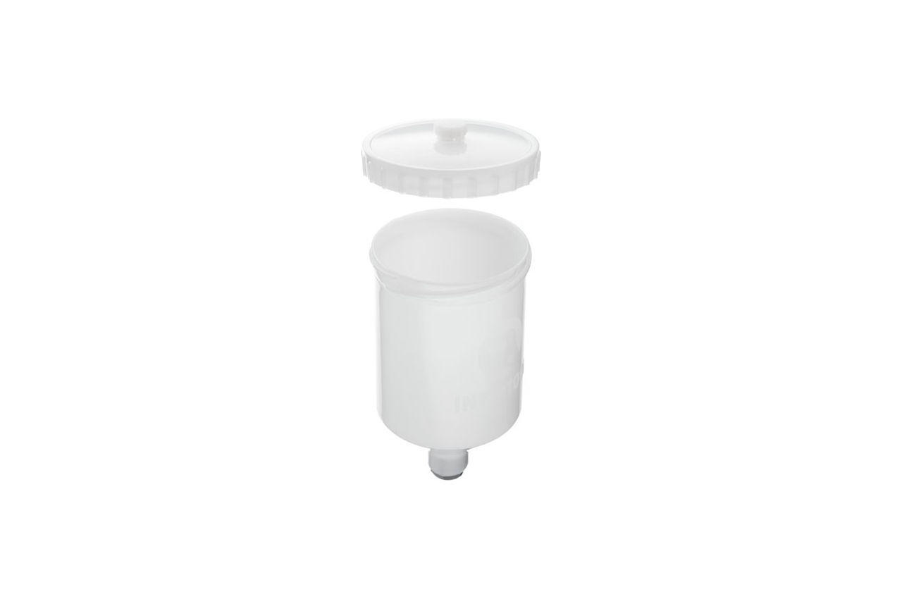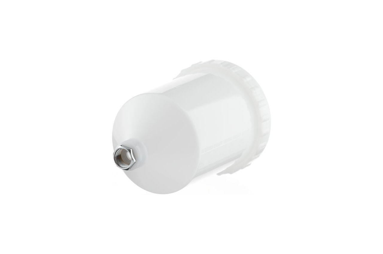 Бачок пластиковий призначений для більшості фарбопультів системи HVLP і LVLP. Корпус бачка виготовлений із пластику, через його стінки добре проглядається рівень фарби, що дуже зручно в роботі. Дозволяє контролювати витрату ЛФМ і вчасно доливати. Бачок оснащений посадковим місцем з внутрішнім різьбленням М16х1.5; і прекрасно підійде як заміна або додатковий бачок до фарбувального пістолета. Обсяг бачка: 600 мл; Розташування бачка: верхнє; Матеріал бачка: пластик