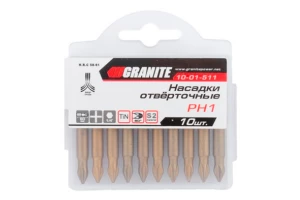 Призначаються для використання як змінні насадки в ручному та механізованому інструменті. Біти виготовлені з високоякісної легованої сталі, що забезпечує максимальну зносостійкість і довгий термін служби. Тип насадки PH1; Довжина 50 мм. Кількість: 10 од.