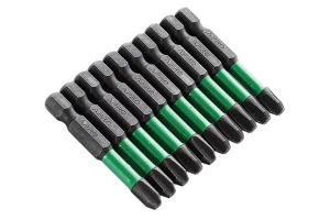 Біти виготовлені з високоякісної легованої сталі з титановим покриттям, що забезпечує максимальну зносостійкість і довгий термін служби. Використовується як в ручному інструменті, так і з дрилями, шуруповертами і гвинтоверти. Тип насадки PH3; Довжина 50 мм. Кількість: 10 од.