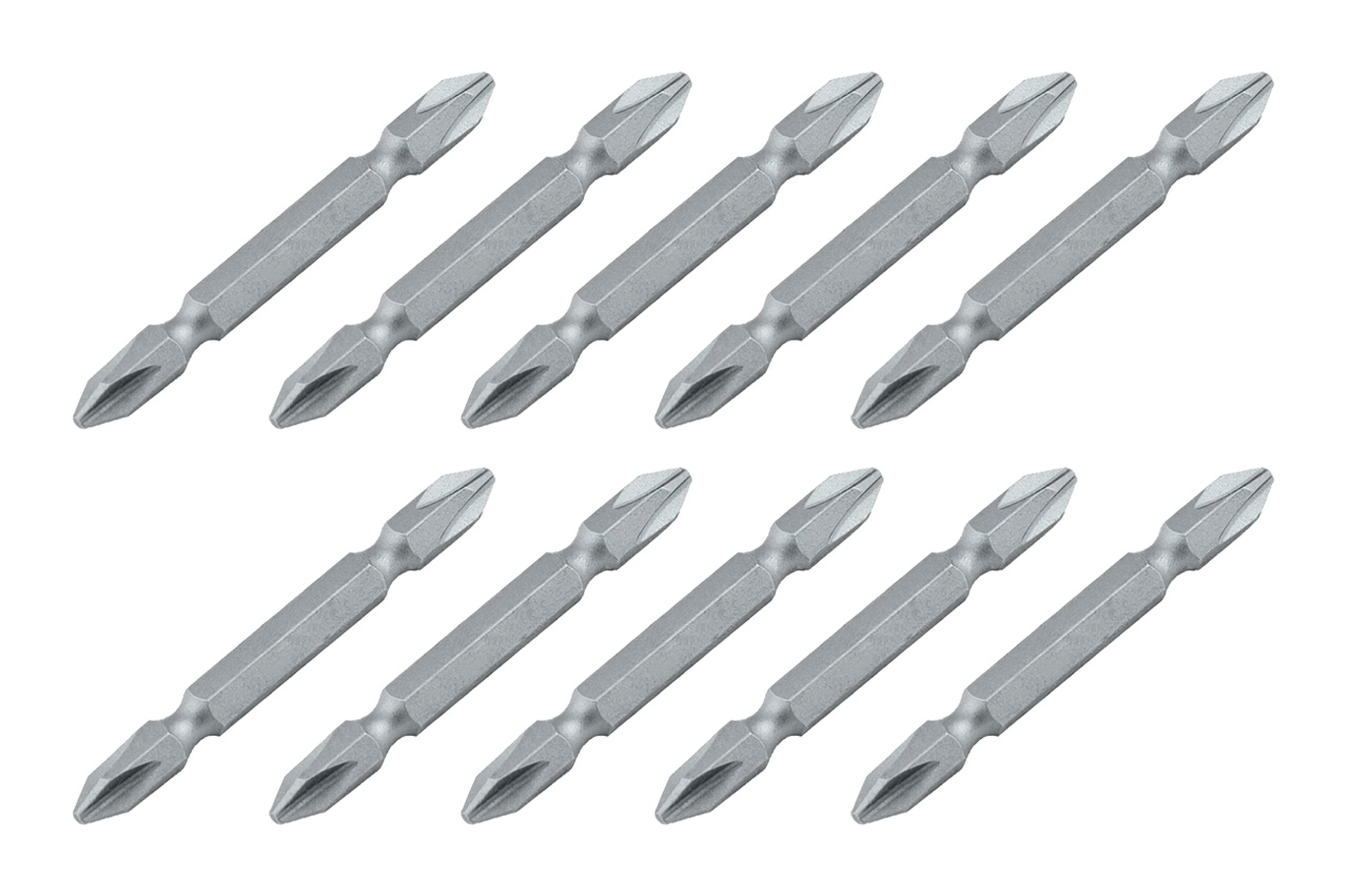 Призначаються для використання як змінні насадки в ручному та механізованому інструменті. Біти виготовлені з високоякісної легованої сталі, що забезпечує максимальну зносостійкість і довгий термін служби. Тип насадки PH2 х PH2; Довжина 65 мм. Кількість: 10 од.