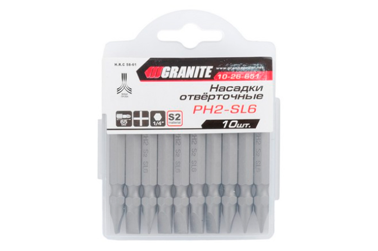 Біта Granite - PH2 х SL6 х 65 мм (10 шт.)
