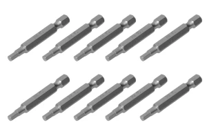 Комплект отверточних насадок (біт) призначений для ефективного відкручування і закручування кріпильних елементів з типом шліца H4. Застосування Біти використовуються як в ручному інструменті, так і з дрилями, шуруповертами і гвинтоверти, завдяки універсальному шестигранником 1/4 ". Довжина насадок становить 50 мм. Вузька частина біти дозволяє дістати кріплення у важкодоступних місцях. Висока якість виготовлення Насадки виготовлені з високоміцної сталі S2, яка вважається найкращою в своєму сегменті. в складі цієї стали присутні молібден і кремній, які надають виробу високий опір до навантажень і низький поріг оборотної деформації. Також сталь S2 відрізняється довговічністю і не схильна до крихкого руйнування, біти стійкі до корозії. Твердість стали становить 61-62 HRC. Кольорове маркування Біти маркуються помаранчевим кольором, який вказує на тип шліца - Hex. Це дозволить вам швидко знайти необхідну насадку серед інших біт в вашому арсеналі інструменту.
