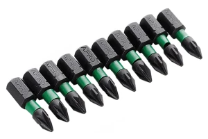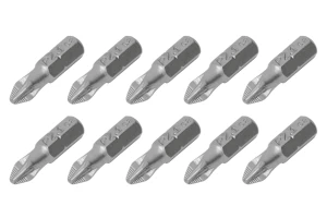 Комплект викруткових насадок (біт) призначений для ефективного відкручування і закручування кріпильних елементів з типом шліца PZ1. Використовуються біти як із ручним інструментом, так і з дрилями, шурупокрутами і гвинтовертами завдяки універсальному шестигранному хвостовику 1/4". Довжина насадок становить 25 мм. Насадки виготовлені з надміцної сталі S2, яка вважається кращою в своєму сегменті. Біти маркуються синім кольором, який вказує на тип шліца - PZ. Це дозволить вам швидко знайти необхідну насадку серед інших біт у вашому арсеналі інструменту.