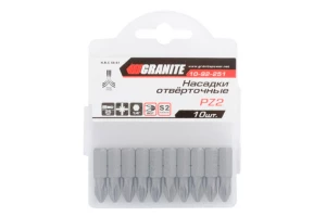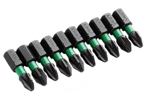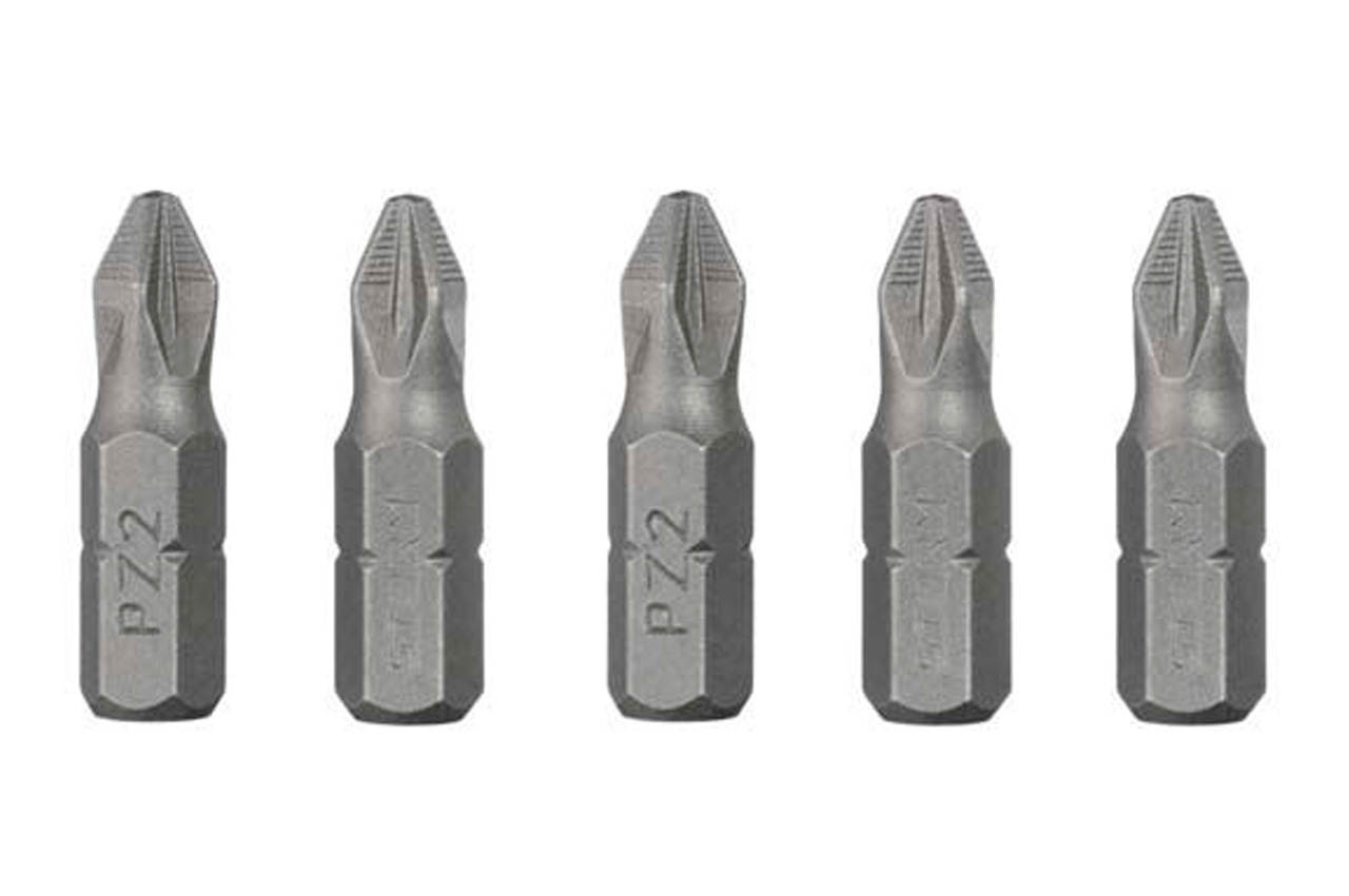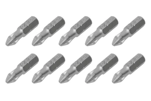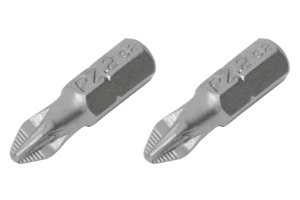Комплект отверточних насадок (біт) призначений для ефективного відкручування і закручування кріпильних елементів з типом шліца PZ2. Використовується як в ручному інструменті, так і з дрилями, шуруповертами і гвинтоверти, завдяки універсальному шестигранником 1/4 ". Висока якість виготовлення Насадки виготовлені з високоміцної сталі S2, яка вважається найкращою в своєму сегменті. В складі цієї стали присутні молібден і кремній, які надають виробу високий опір до навантажень і низький поріг оборотної деформації. Також сталь S2 відрізняється довговічністю і не схильна до крихкого руйнування, біти стійкі до корозії. Твердість стали становить 61-62 HRC. Наконечник ACR Спеціальні насічки ACR (Anti-Cam-Out Ribs) на робочих гранях наконечника покращують зчеплення біти з шлицом кріплення. Таким чином біта надійно фіксується в шліцах шурупів, саморізів і ін.