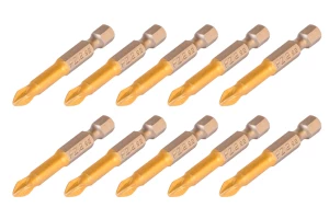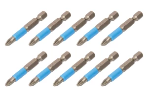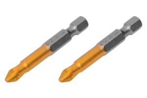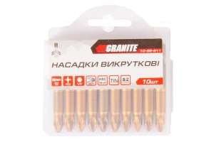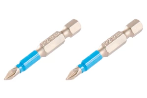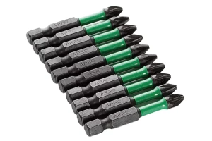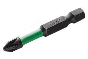 Комплект отверточних насадок (біт) призначений для ефективного відкручування і закручування кріпильних елементів з типом шліца PZ2. Використовується як в ручному інструменті, так і з дрилями, шуруповертами і гвинтоверти, завдяки універсальному шестигранником 1/4 ". Висока якість виготовлення Насадки виготовлені з високоміцної сталі S2, яка вважається найкращою в своєму сегменті. В складі цієї стали присутні молібден і кремній, які надають виробу високий опір до навантажень і низький поріг оборотної деформації. Також сталь S2 відрізняється довговічністю і не схильна до крихкого руйнування, біти стійкі до корозії. Твердість стали становить 61-62 HRC. Наконечник ACR Спеціальні насічки ACR (Anti-Cam-Out Ribs) на робочих гранях наконечника покращують зчеплення біти з шлицом кріплення. Таким чином біта надійно фіксується в шліцах шурупів, саморізів і ін.