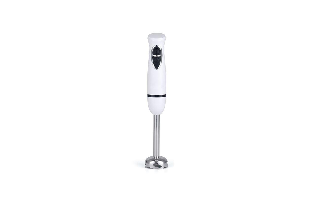 Ручний блендер Maestro MR 510 потужністю 300 Вт працює в двох швидкісних режимах, поставляється в комплекті з мірною склянкою об'ємом 600 мл, має білий пластиковий корпус та ножі з нержавіючої сталі. Блендер призначений для подрібнення їжі, приготування емульсій, пюре, збивання напоїв, мусів тощо, а також для коління льоду