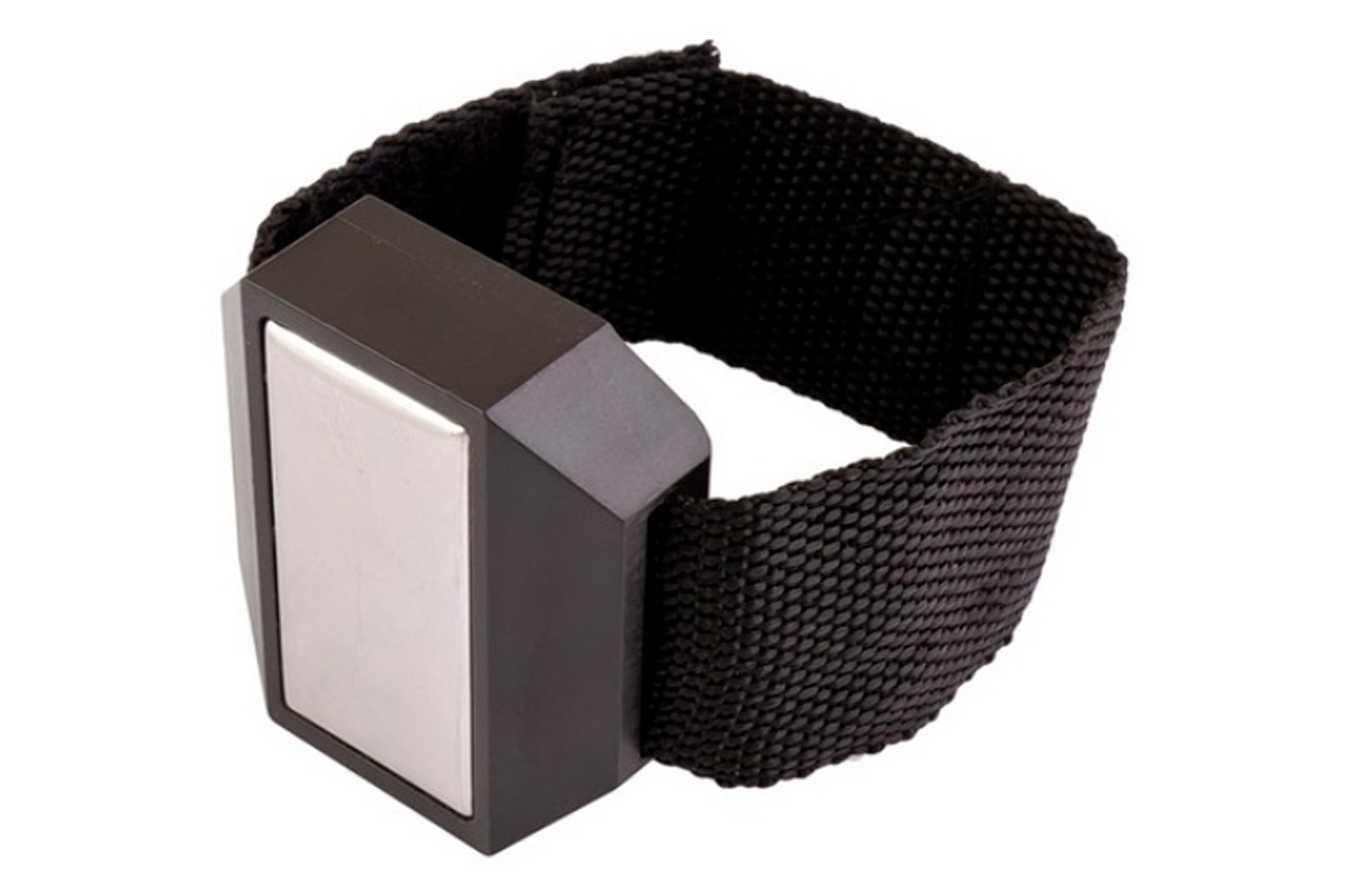 Магнітний браслет призначений для дрібного кріплення, такого як шурупи, болти, цвяхи, також зручний для кріплення голок, шпильок і інших невеликих металевих виробів. Браслет зручно фіксується на будь-якому зап'ясті завдяки застібці-липучці.