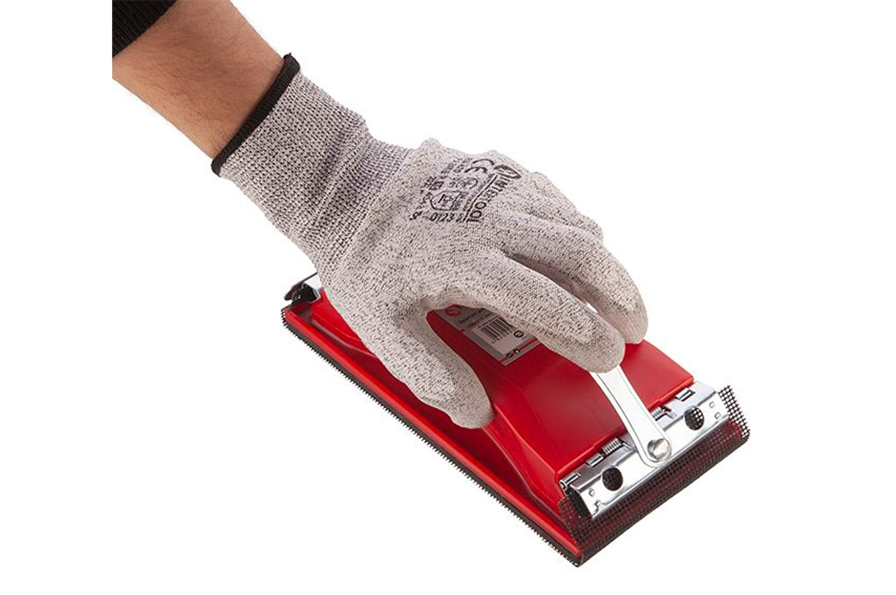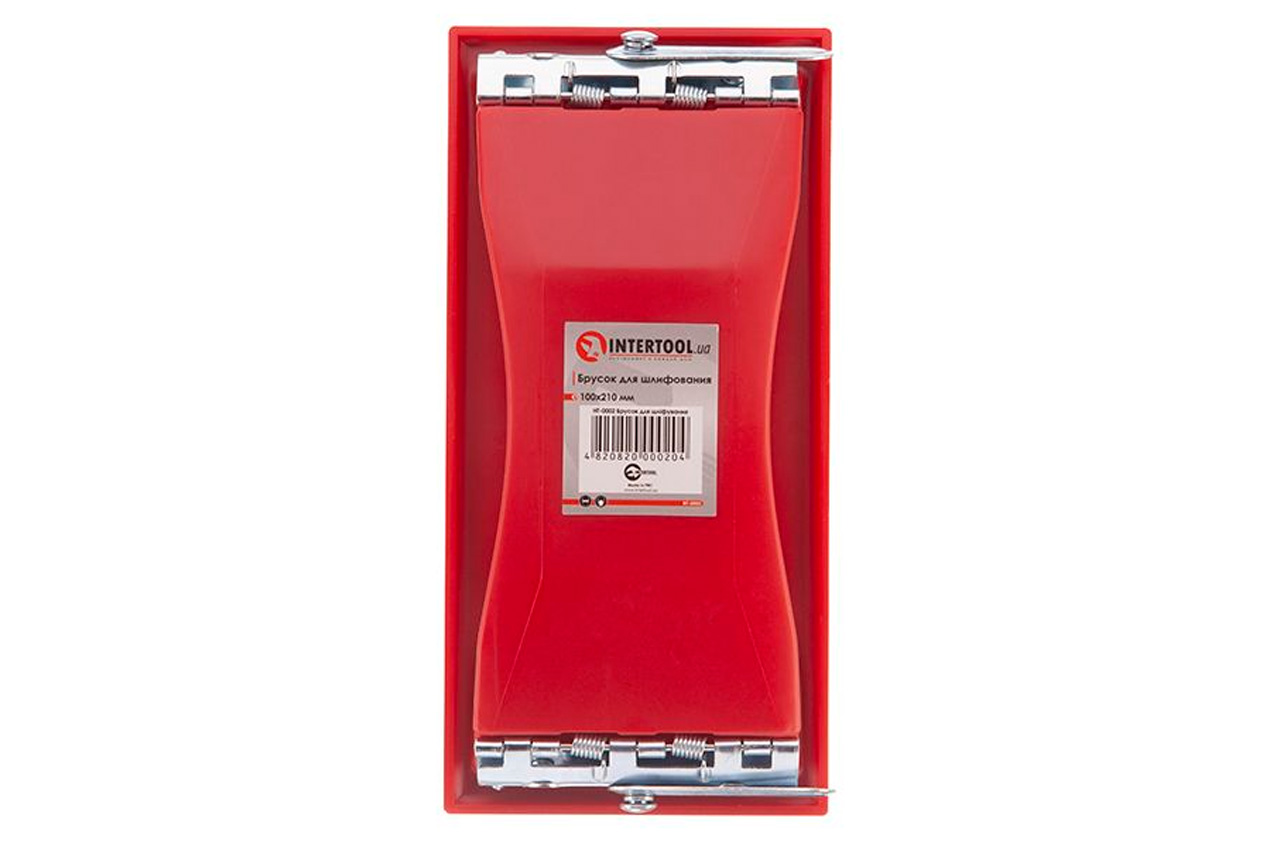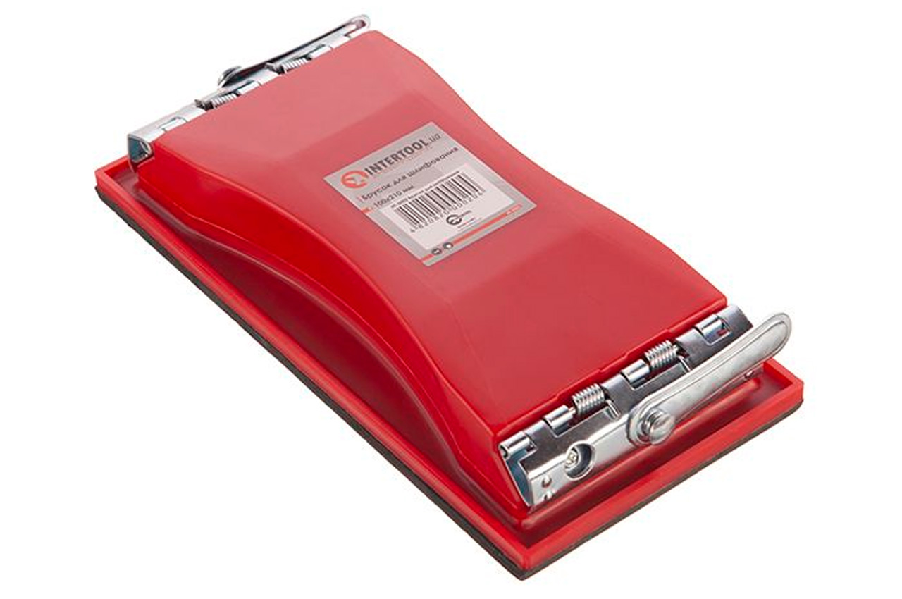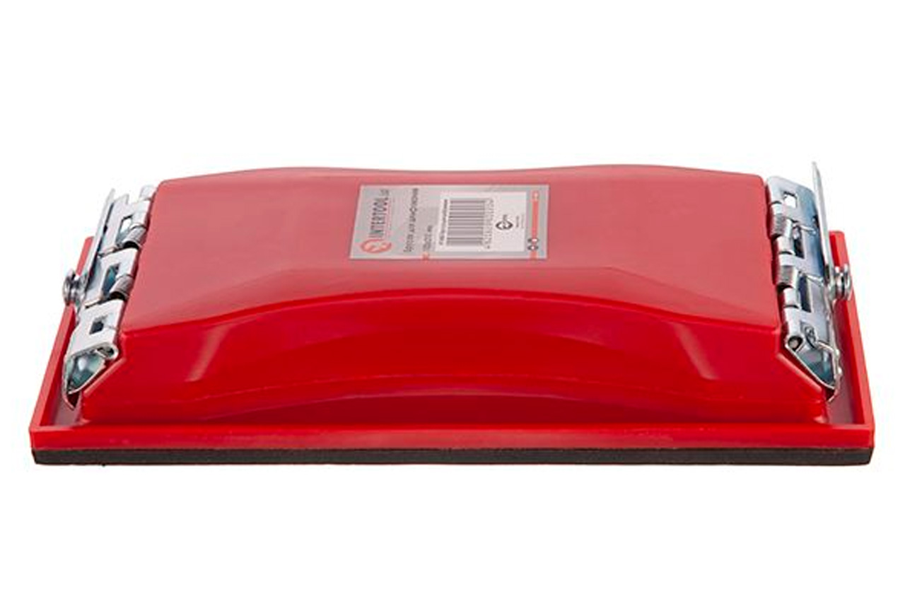 Виготовлений з удароміцного пластика, оснащений металевим затискачем, що забезпечує швидку і надійну фіксацію абразивного матеріалу. Застосовується для обробки поверхонь перед фарбуванням, пофарбованих поверхонь, шпаклівки, лакофарбових покриттів, як сухим так і мокрим методом затирання. Розміри: 100x210 мм