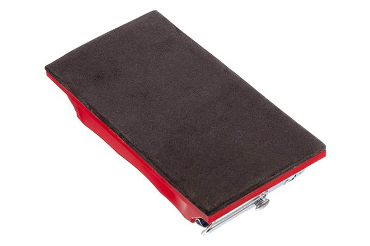 Виготовлений з удароміцного пластика, оснащений металевим затискачем, що забезпечує швидку і надійну фіксацію абразивного матеріалу. Застосовується для обробки поверхонь перед фарбуванням, пофарбованих поверхонь, шпаклівки, лакофарбових покриттів, як сухим так і мокрим методом затирання. Розміри: 85x165 мм