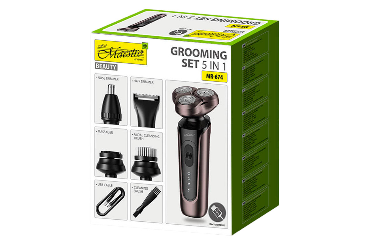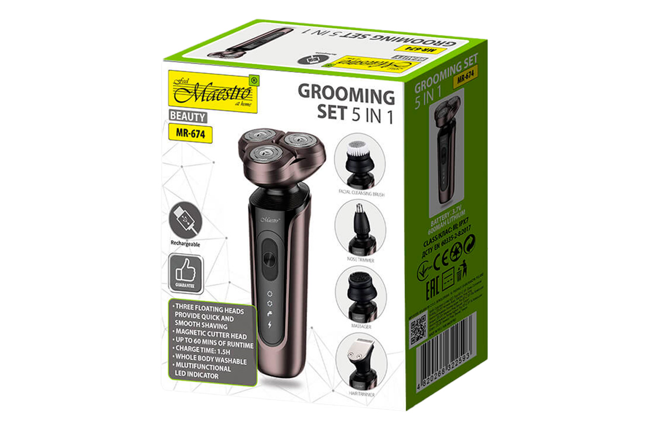 Бритва роторна Maestro - 600мАч x 3 головки x 5 насадок