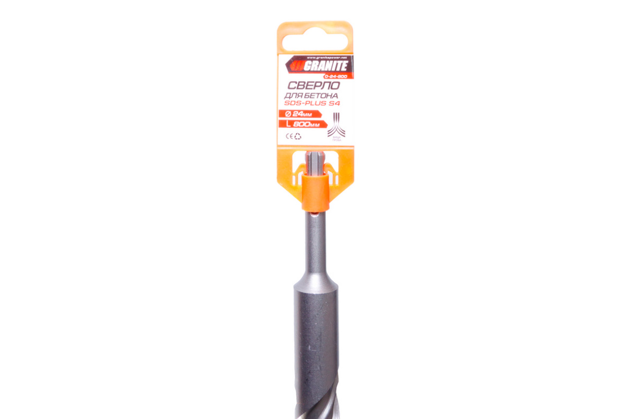 Бур по бетону S4 "Granite" з твердосплавної побідитовою напайкою. Використовується для утворення наскрізного або глухого отвору у суцільному матеріалі та/або збільшення діаметра наявного отвору. Застосовується для обробки цегляної кладки, залізобетону, граніту і твердого бетону. Хвостовик SDS+; Діаметр свердління - 24 мм; Довжина бура - 800 мм.