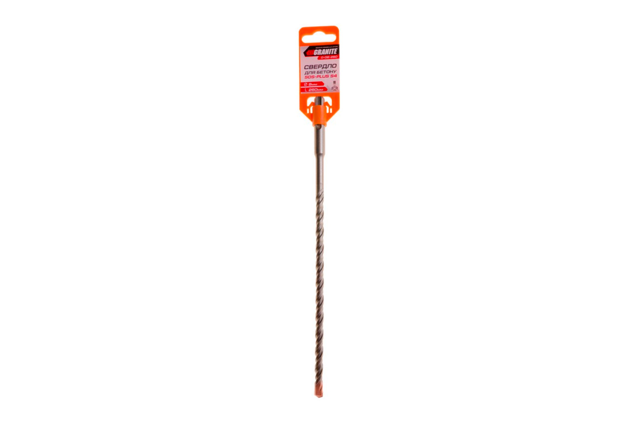 Бур по бетону S4 "Granite" з твердосплавної побідитовою напайкою. Використовується для утворення наскрізного або глухого отвору у суцільному матеріалі та/або збільшення діаметра наявного отвору. Застосовується для обробки цегляної кладки, залізобетону, граніту і твердого бетону. Хвостовик SDS+; Діаметр свердління - 8 мм; Довжина бура - 260 мм.