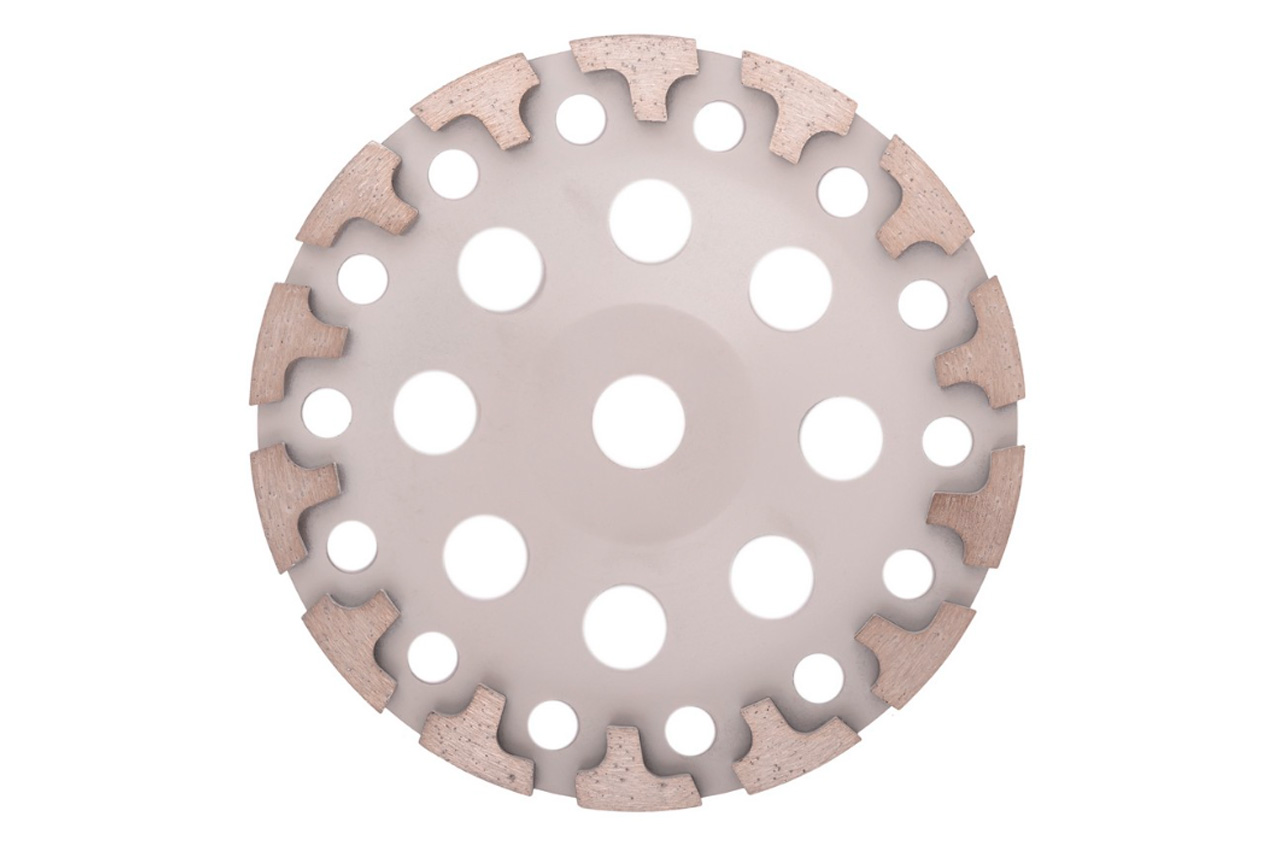 Призначена для вирівнювання бетонних поверхонь, усунення опалубних напливів і швів, зачистки бетонних поверхонь перед нанесенням захисних або декоративних покриттів. • діаметр посадкового отвору 22.2 мм • висота ріжучої кромки (h) 5 мм • насиченість алмазною крихтою > 24%