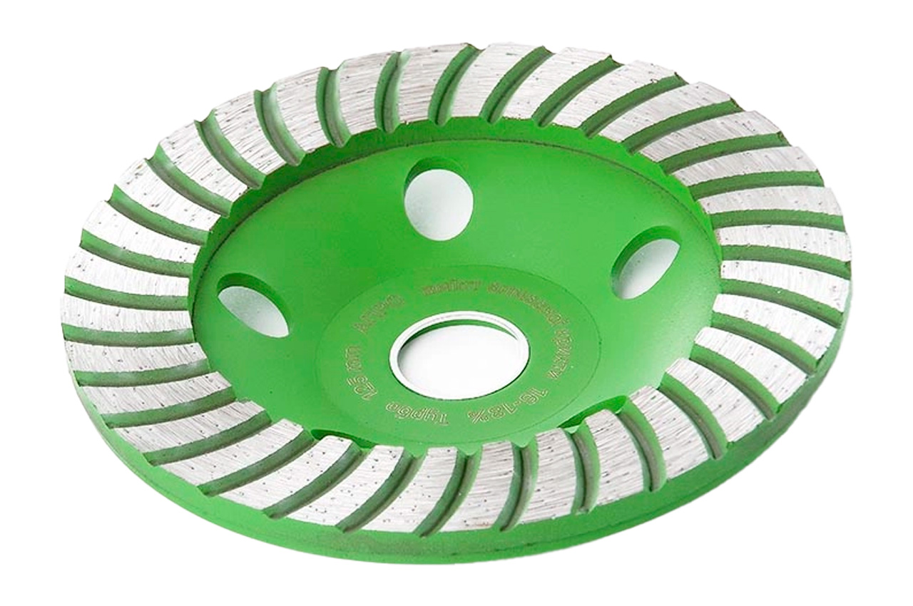Шліфувальна алмазна чаша "Турбо" використовується для усунення дефектів та напливів, зачищення швів на поверхнях. Чашка робить поверхню рівною та гладкою, що підходить для фінішної обробки. Використовується для шліфування середньоабразивних матеріалів, будівельних матеріалів (бетон) та природного каменю (граніт I-V, мармур, піщанка) без охолодження водою.