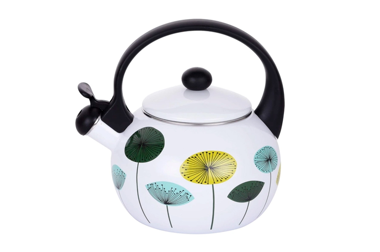 Чайник зі свистком (2,2 л) білий з рослинним малюнком від польського виробника кухонного посуду та аксесуарів Kamille виготовлений із високоякісної нержавіючої сталі, покритої емаллю, що робить його ідеальним вибором для використання у повсякденних умовах. А наявність свистка служить своєрідним «нагадувачем», який гарантує, що вода буде нагріта до потрібної температури і готова для використання при приготуванні чаю, кави або інших гарячих напоїв.