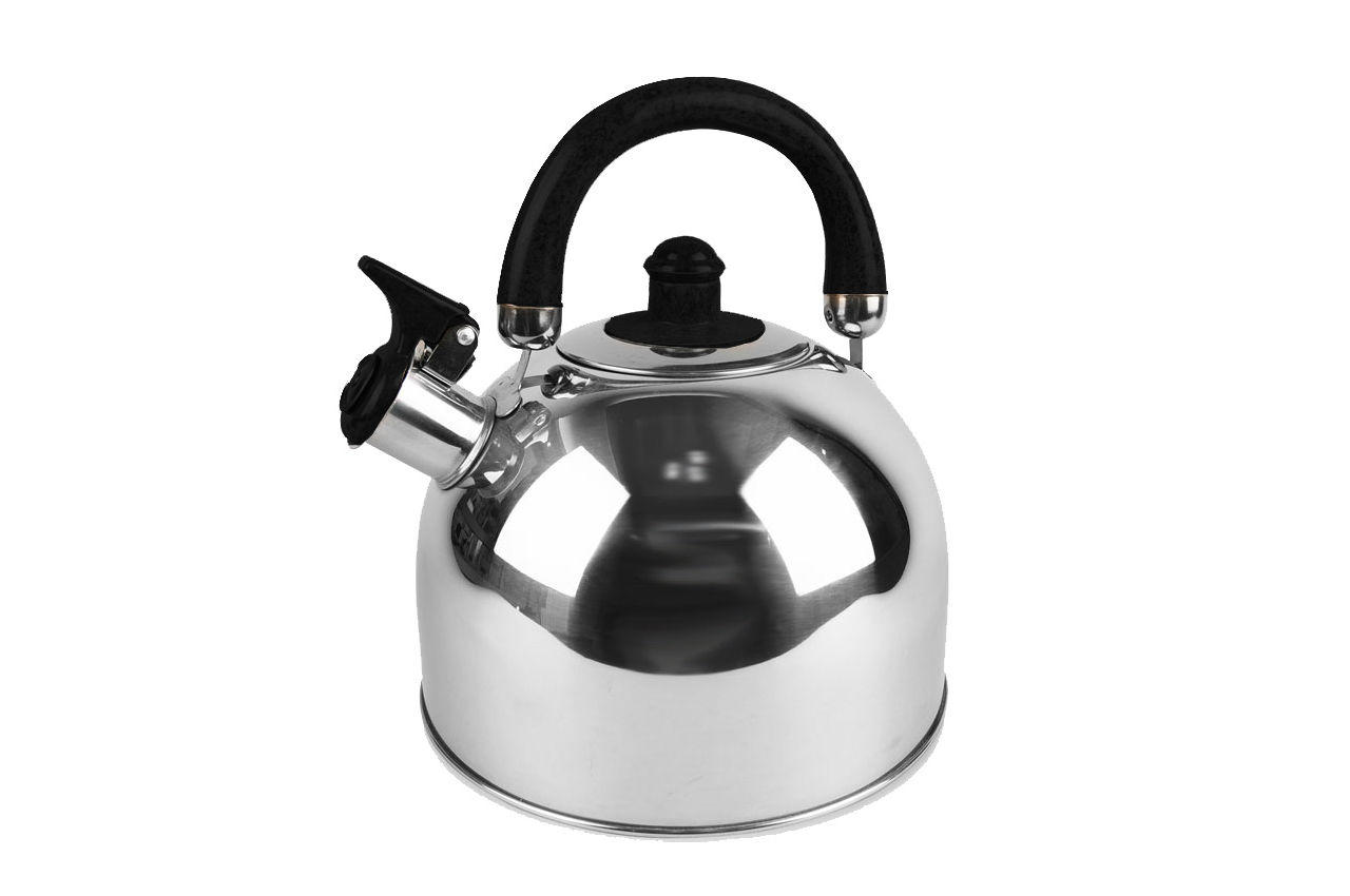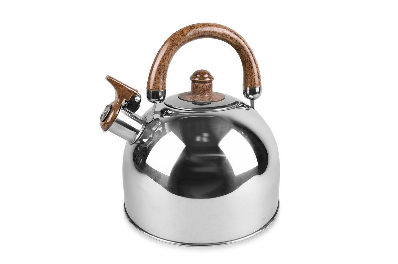 Чайник об'ємом в 3,5 л виготовлений з високоякісної нержавіючої сталі з глянсовою поліруванням. Оснащений клапаном-свистком і важелем для безпечного відкривання / закривання. Одношарове індукційне дно.Кришка чайника сталева з бакелітовій ручкою. Підходить для всіх типів плит, включаючи індукційні.