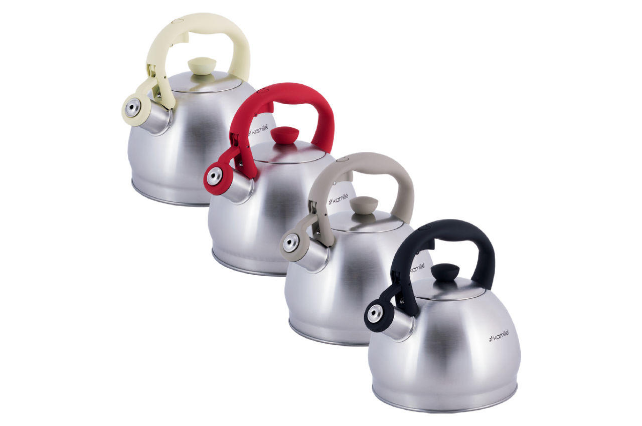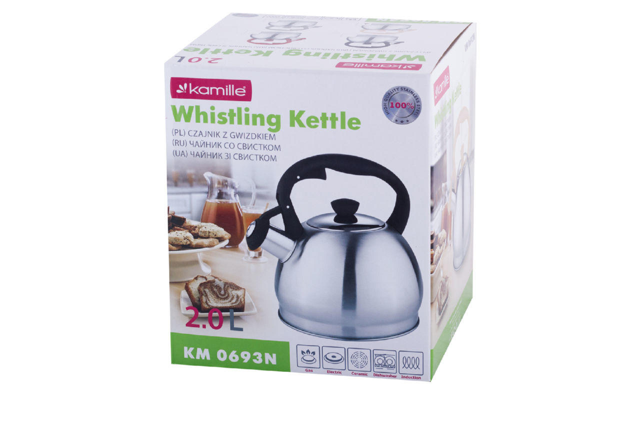 Чайник Kamille виготовлені з високоякісних матеріалів з використанням новітніх технологій виробництва, завдяки чому вони підходять для інтенсивного щоденного використання, а їх естетичний зовнішній вигляд неодмінно підійде до дизайну Вашої кухні. Матеріал: нержавіюча сталь Матеріал кришки: нержавіюча сталь Тип ручки: фіксована Загальний об'єм: 2л