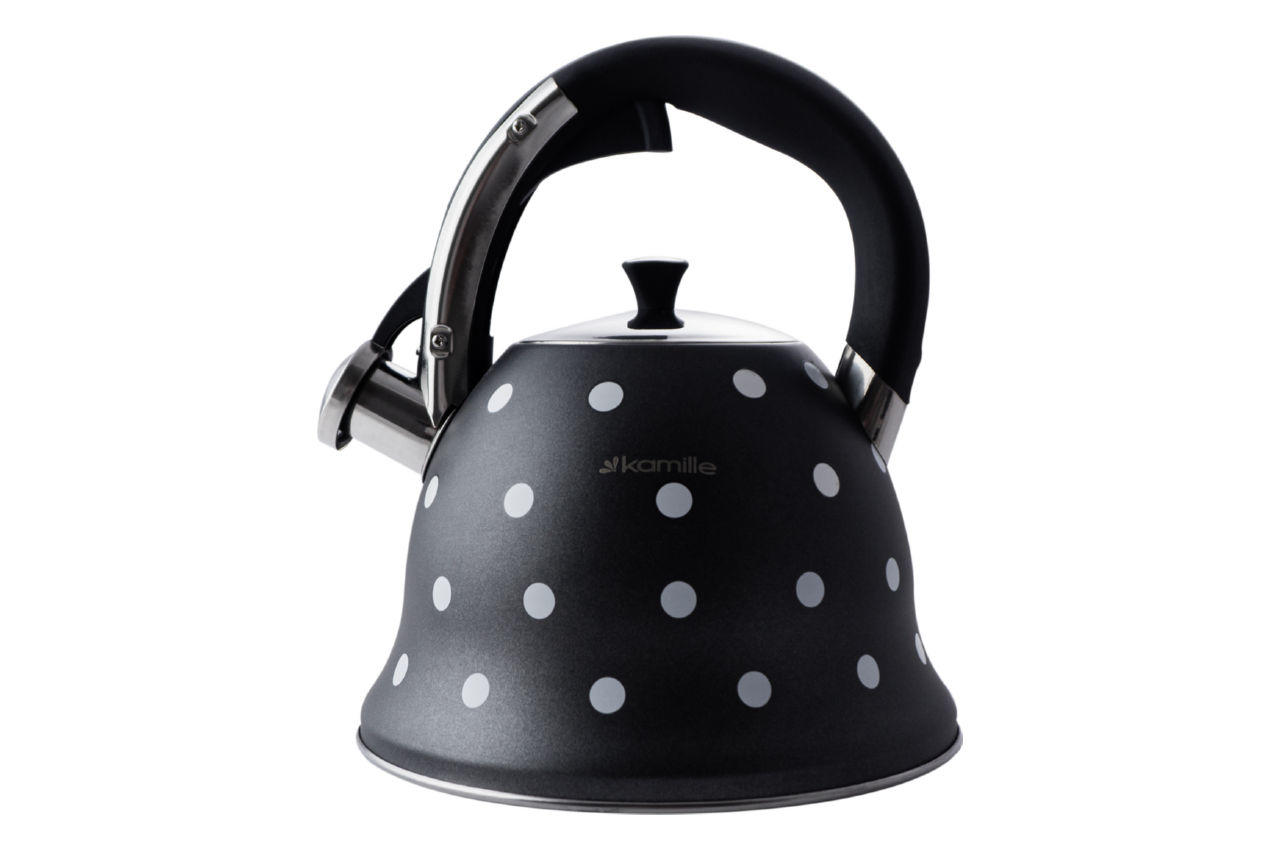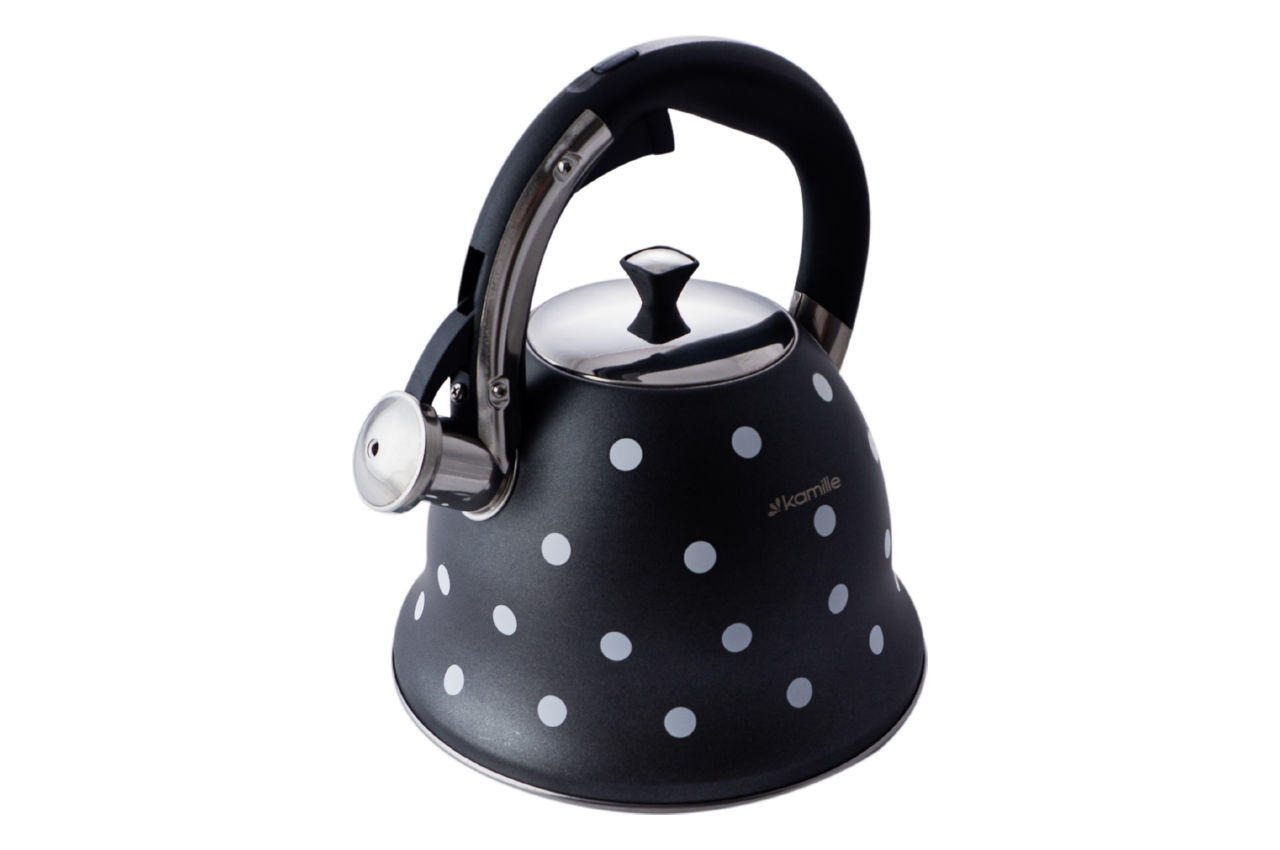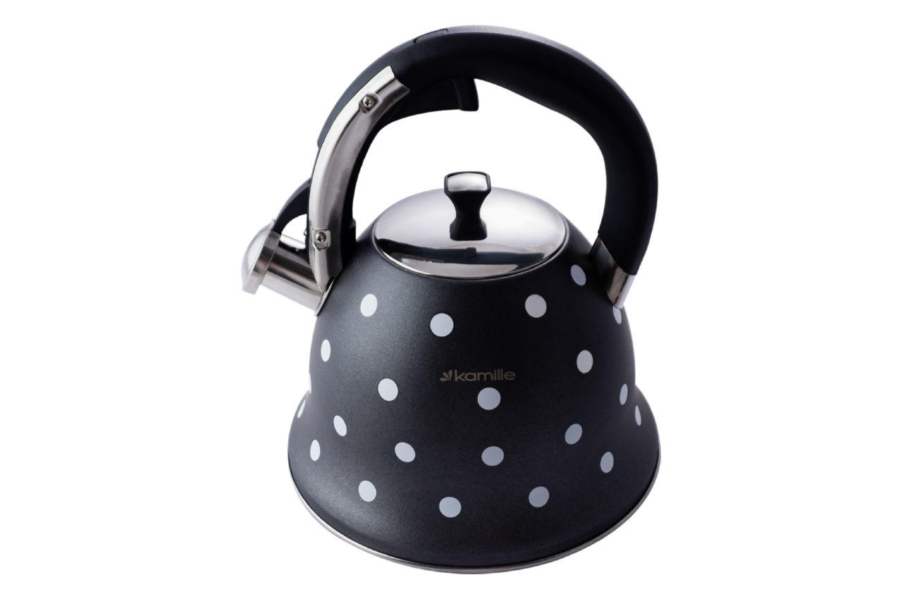 Чайники Kamille виготовлені з високоякісних матеріалів з використанням новітніх технологій виробництва, завдяки чому вони підходять для інтенсивного щоденного використання, а їх естетичний вигляд неодмінно підійде до дизайну Вашої кухні. Матеріал: нержавіюча сталь. Загальний об'єм: 2,5л. Колір рукоятки: чорний. Матеріал кришки: нержавіюча сталь. Матеріал ручки: поліпропілен.