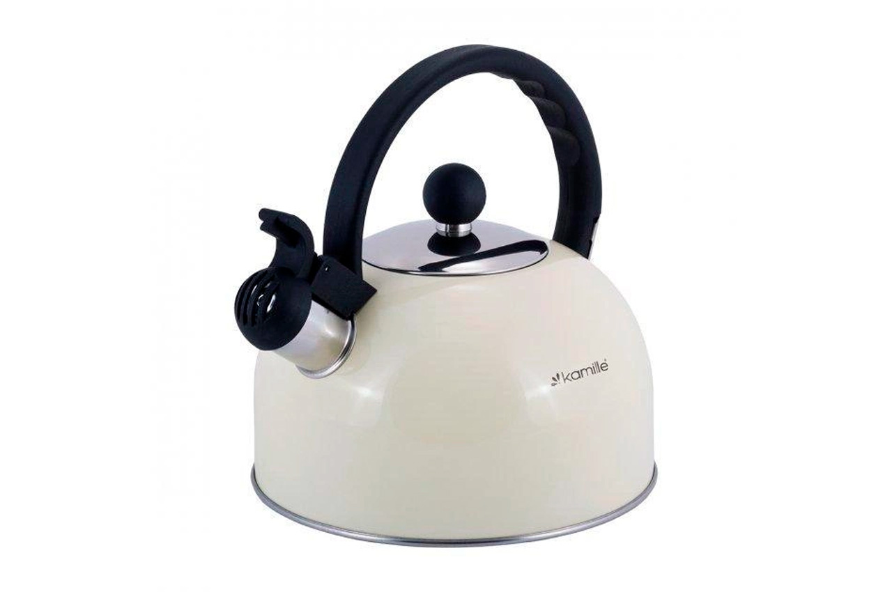 Чайник Kamille виготовлені з високоякісних матеріалів з використанням новітніх технологій виробництва, завдяки чому вони підходять для інтенсивного щоденного використання, а їх естетичний зовнішній вигляд неодмінно підійде до дизайну Вашої кухні. Матеріал: нержавіюча сталь Матеріал кришки: нержавіюча сталь Матеріал ручки: бакеліт Тип ручки: фіксована Загальний об'єм: 2.5 л