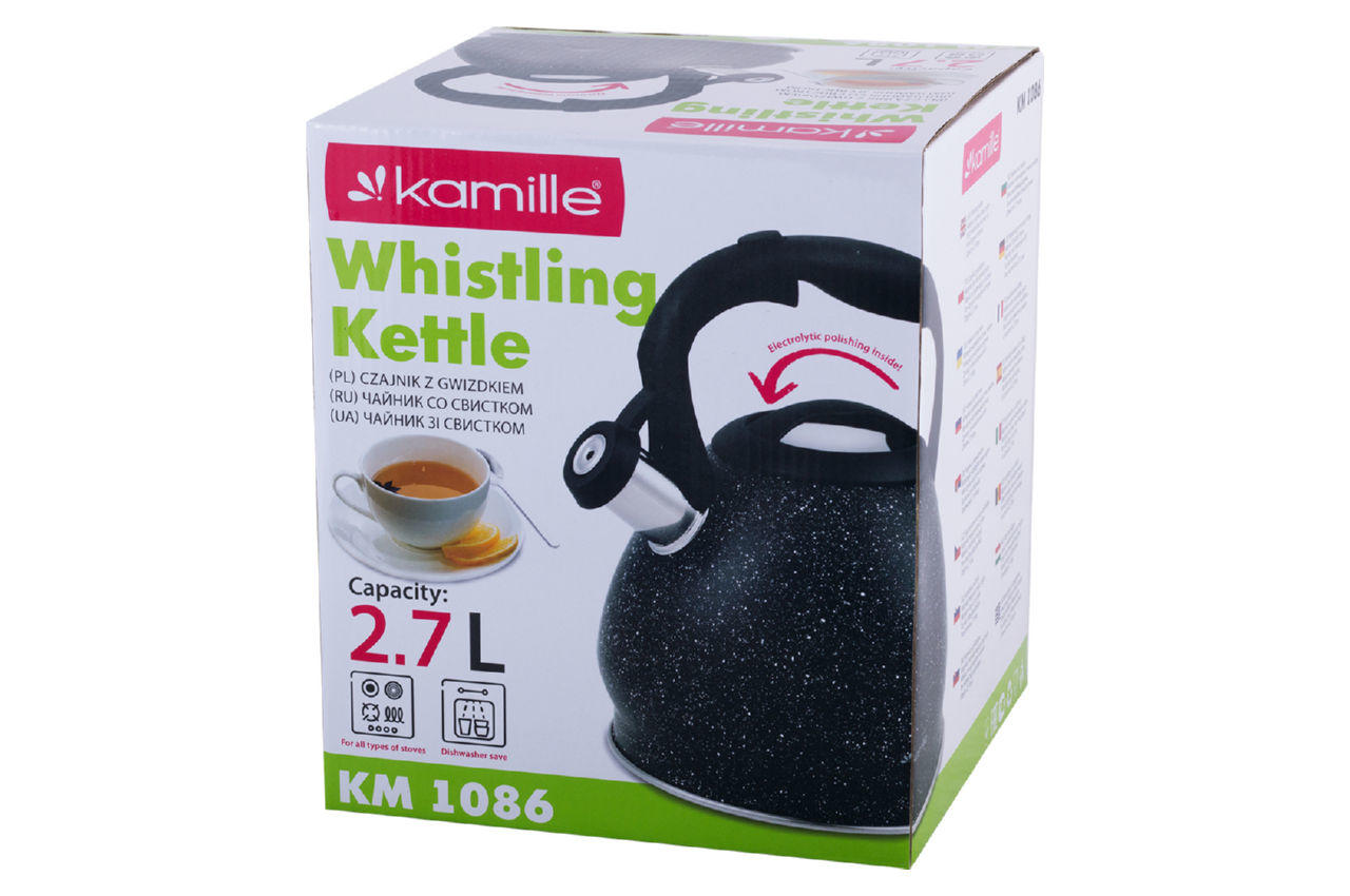 Чайник Kamille виготовлені з високоякісних матеріалів з використанням новітніх технологій виробництва, завдяки чому вони підходять для інтенсивного щоденного використання, а їх естетичний зовнішній вигляд неодмінно підійде до дизайну Вашої кухні. Матеріал: нержавіюча сталь. Загальний об'єм: 2,7 л. Обробка металу: сатин/дзеркальна. Матеріал ручки і кришки: нейлон. Діаметр дна (зовні): 19,5 см Висота (з ручкою): 24см.