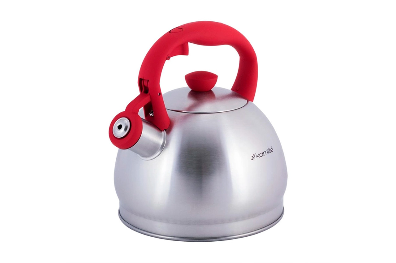 Чайник Kamille виготовлені з високоякісних матеріалів з використанням новітніх технологій виробництва, завдяки чому вони підходять для інтенсивного щоденного використання, а їх естетичний зовнішній вигляд неодмінно підійде до дизайну Вашої кухні. Матеріал: нержавіюча сталь Матеріал кришки: нержавіюча сталь Тип ручки: фіксована Загальний об'єм: 2л